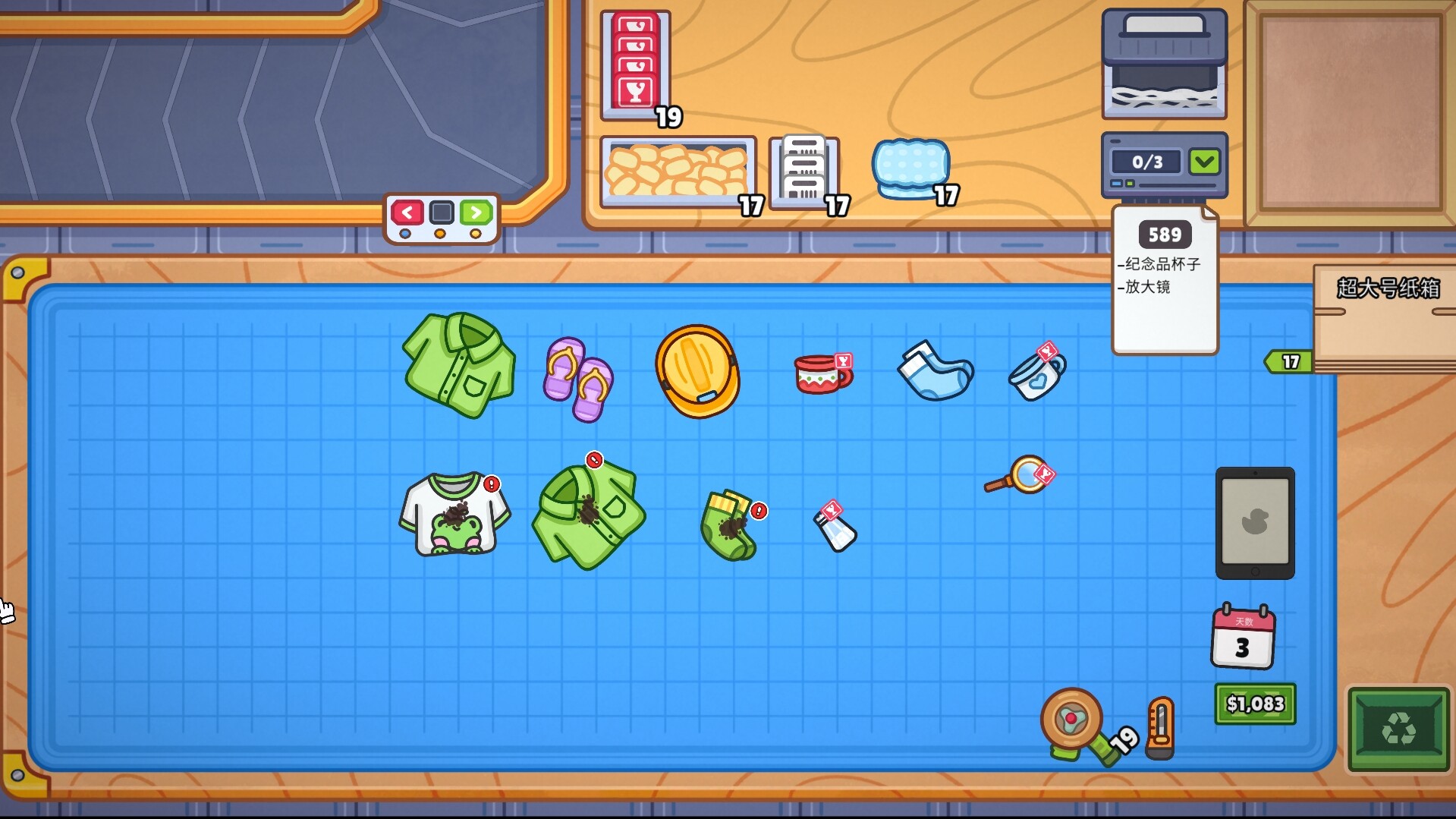 在这里,每个订单都非常重要!记得选择合适的盒子,给不同的物品做好分类打包,你也不想你的快递在半路损坏对吧。放错位置或损坏包裹都会受到投诉,当然,这也会体现在你的工资中!(比如上一个分拣员就没给玻璃贴上易碎标签!)