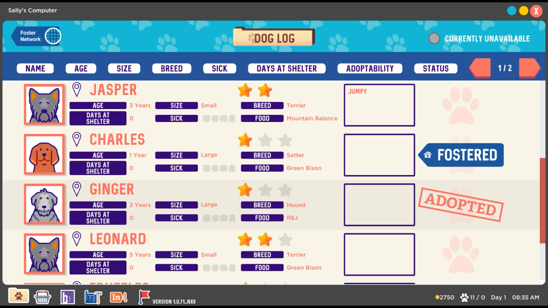 每一天都会带来新的挑战和奖励。狗狗有特定的喜好,可能会感染疾病,并且可能出现叛逆性格。但您也可以举办筹款活动,获得随机捐款,如果您努力工作,还可以帮助别人找到他们最好的新朋友。遗憾的是,空间永远不够,而狗狗却越来越多。