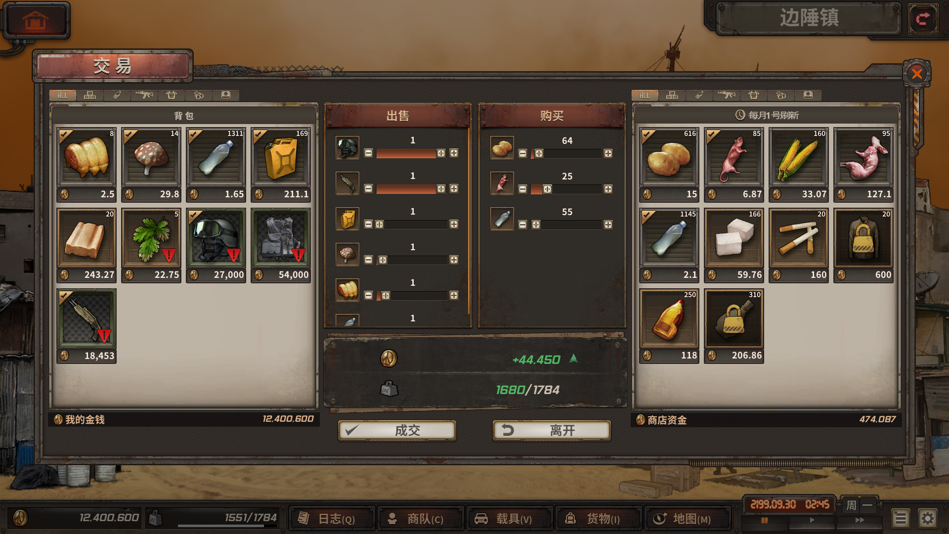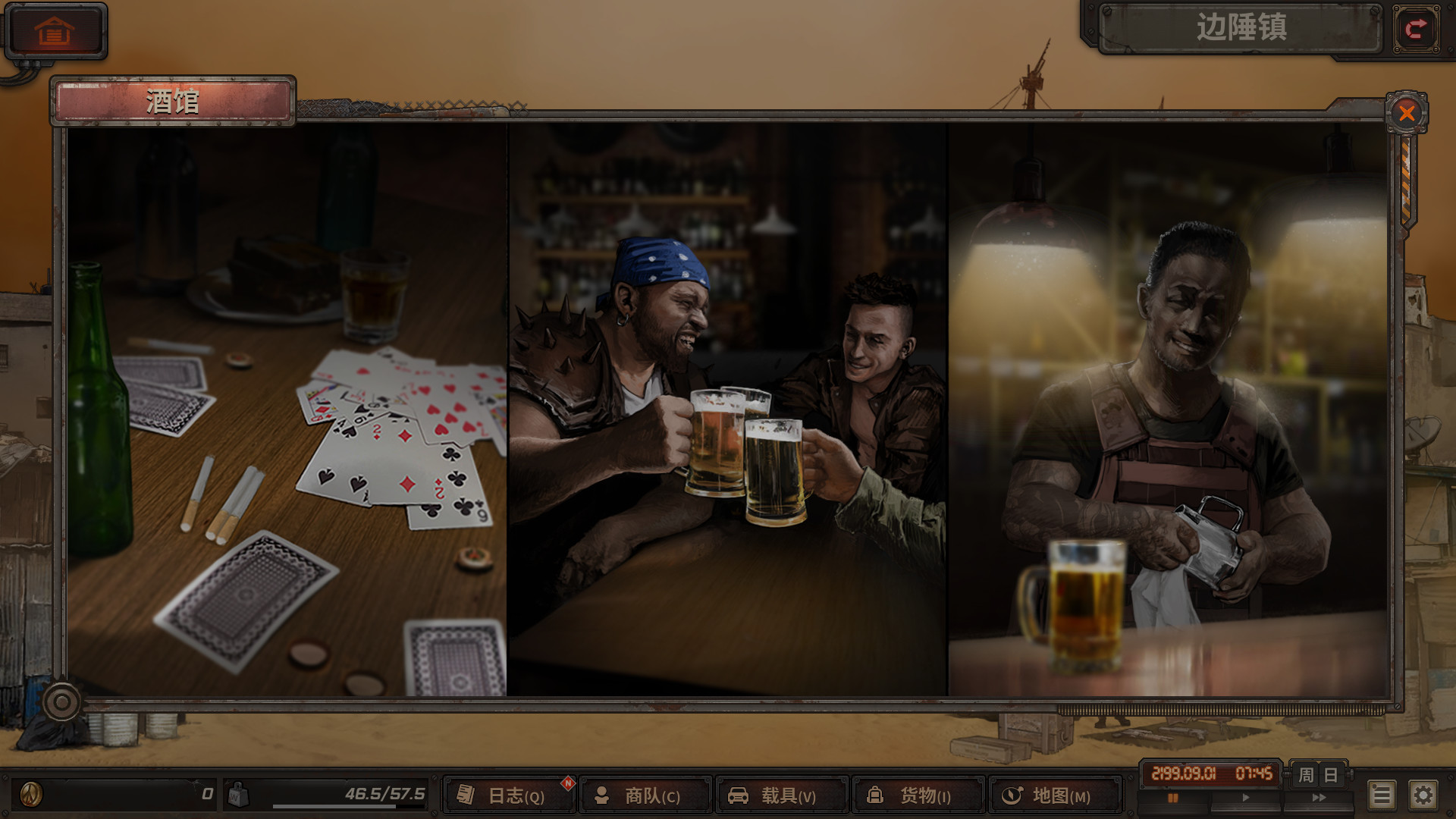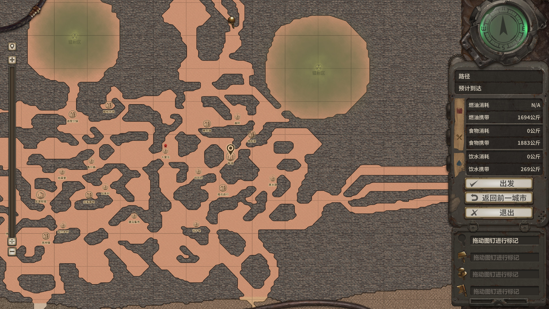 徒步或登上你的载具自由地探索这片残余着辐射的末世废土,直面来自各种变异怪物、土匪强盗、突发事件以及恶劣自然环境的挑战。然而玩家还面临着来自生存的挑战,在地图行进的过程中,饮水、食物、燃油的匮乏都有可能导致你的商队覆灭。