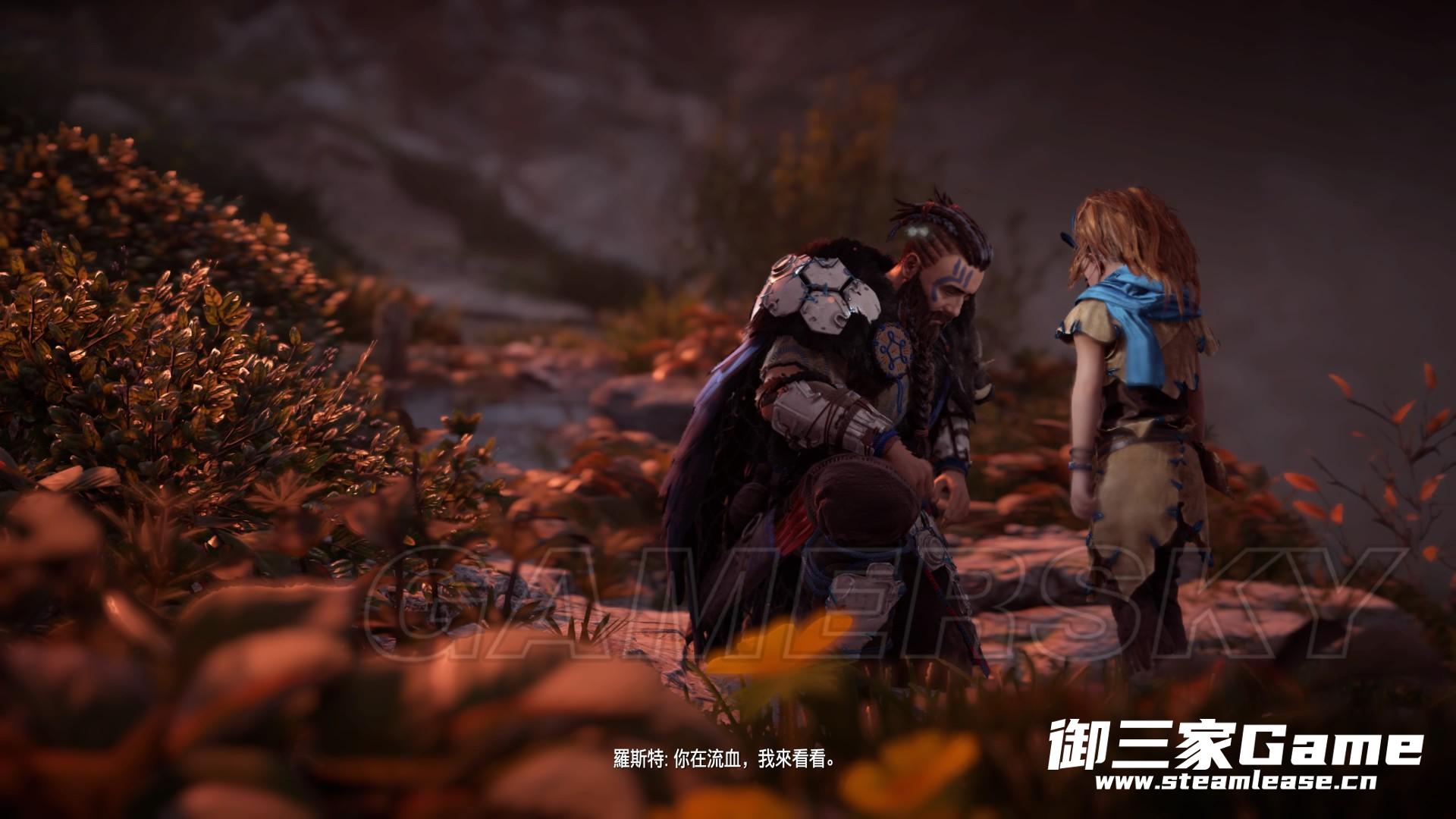 二人来到拥抱荒野的谷地,罗斯特交给小亚萝伊一个草药包并要教导她如何处理伤口,来到罗斯特身旁收集草药浆果,按手柄↑键来使用草药包恢复生命值,然后跟着罗斯特走。