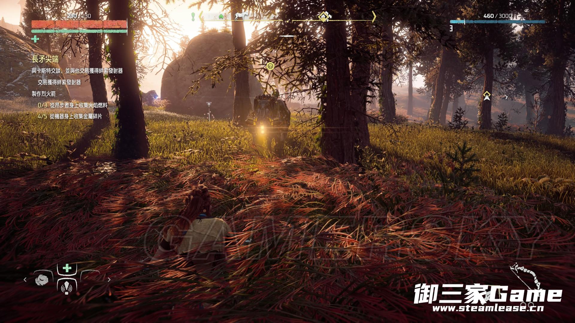 回到草丛内等锯齿兽过来,使用口哨将它引过来无声攻击一次。