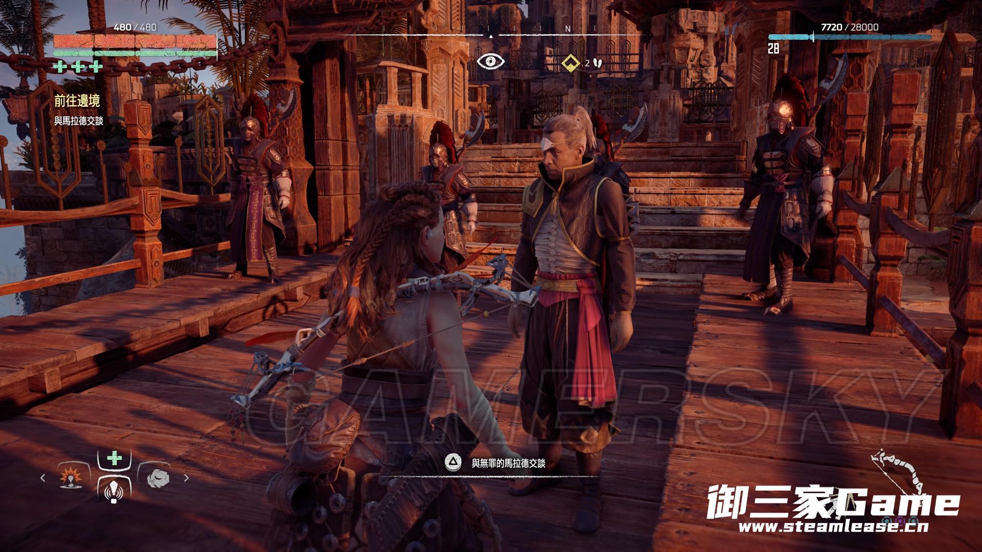 营地内不乏重装敌人,先用Focus标记出敌人,敌人火力凶猛一旦被发现,让艾伦德几人上去扛敌人的仇恨,自己则在后面放暗箭,机械兽如果在没有学得覆盖指令前,建议不要放走,如果已经学习过覆盖指令,在草丛里使用撕裂箭震开捆住机械兽的铁链,再用口哨引过来覆盖,接着看戏便可。
