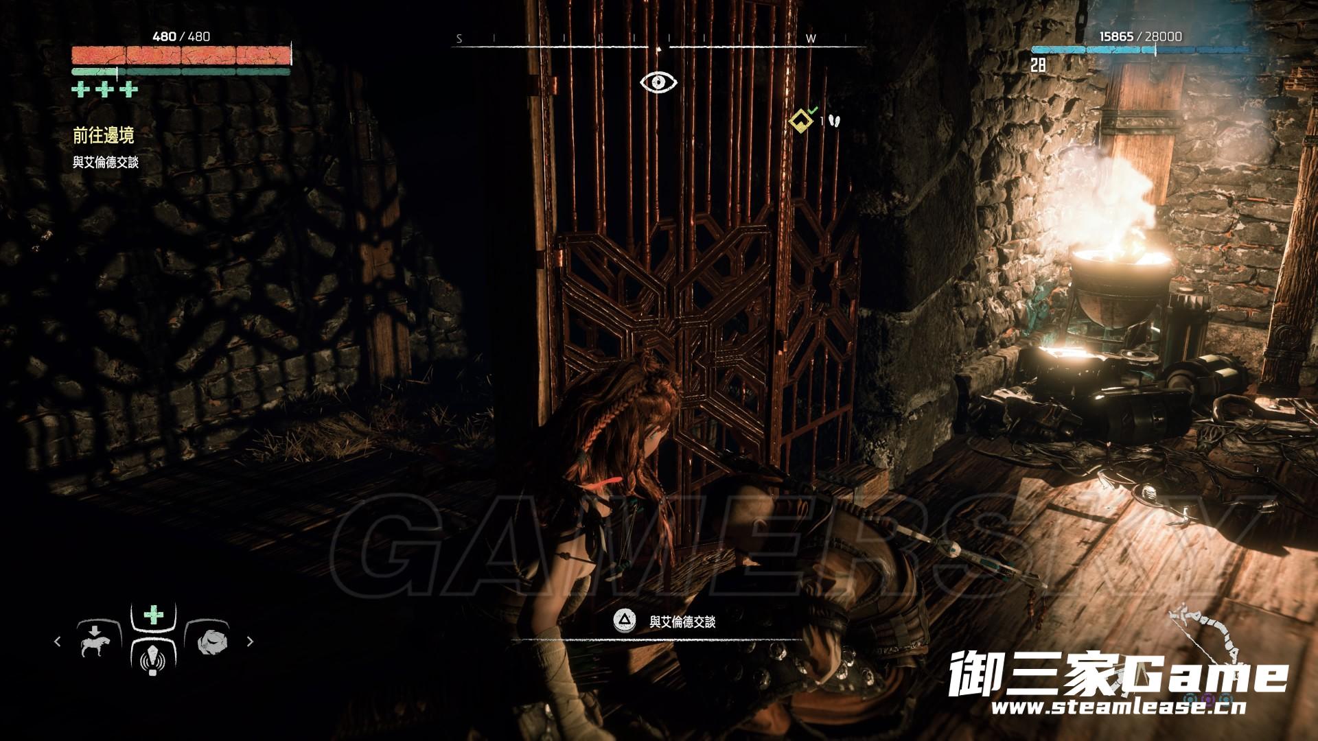 来到院落内地下室门前,亚萝伊小心翼翼的进入,不料被音波装置袭击,地下室内又走出一位重装士兵,亚萝伊退回门外。