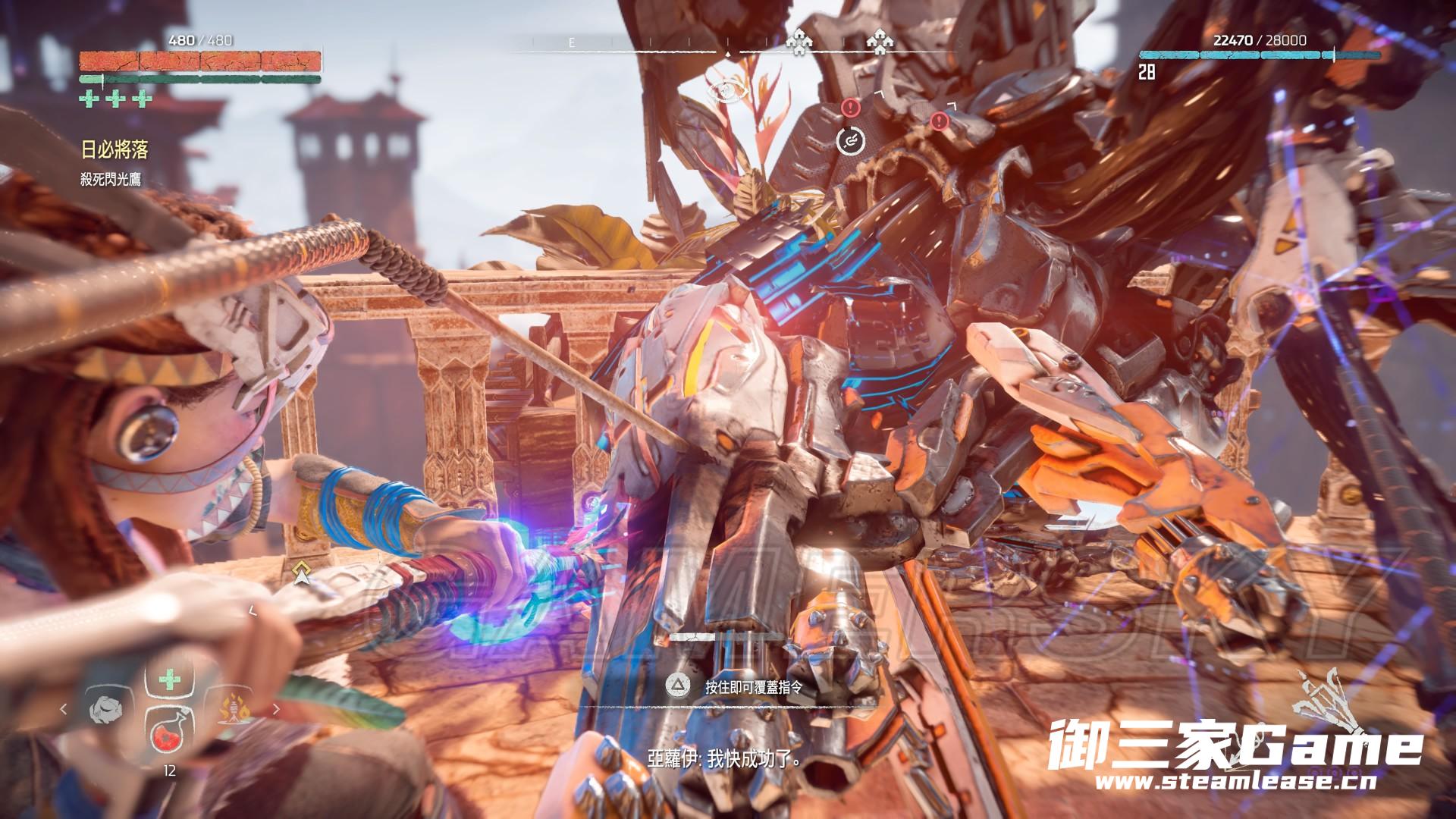 穷途末路的德瓦尔最终还藏有一手,他使用引诱装置将闪光鹰引来,这里将是一个难点,如果已经学会机械覆盖,使用绳索发射器将闪光鹰抓下来后覆盖会让战斗变得很轻松,如果没有学会覆盖指令可以考虑用劣化箭或使用烈火箭将闪光鹰烧下来后重击。