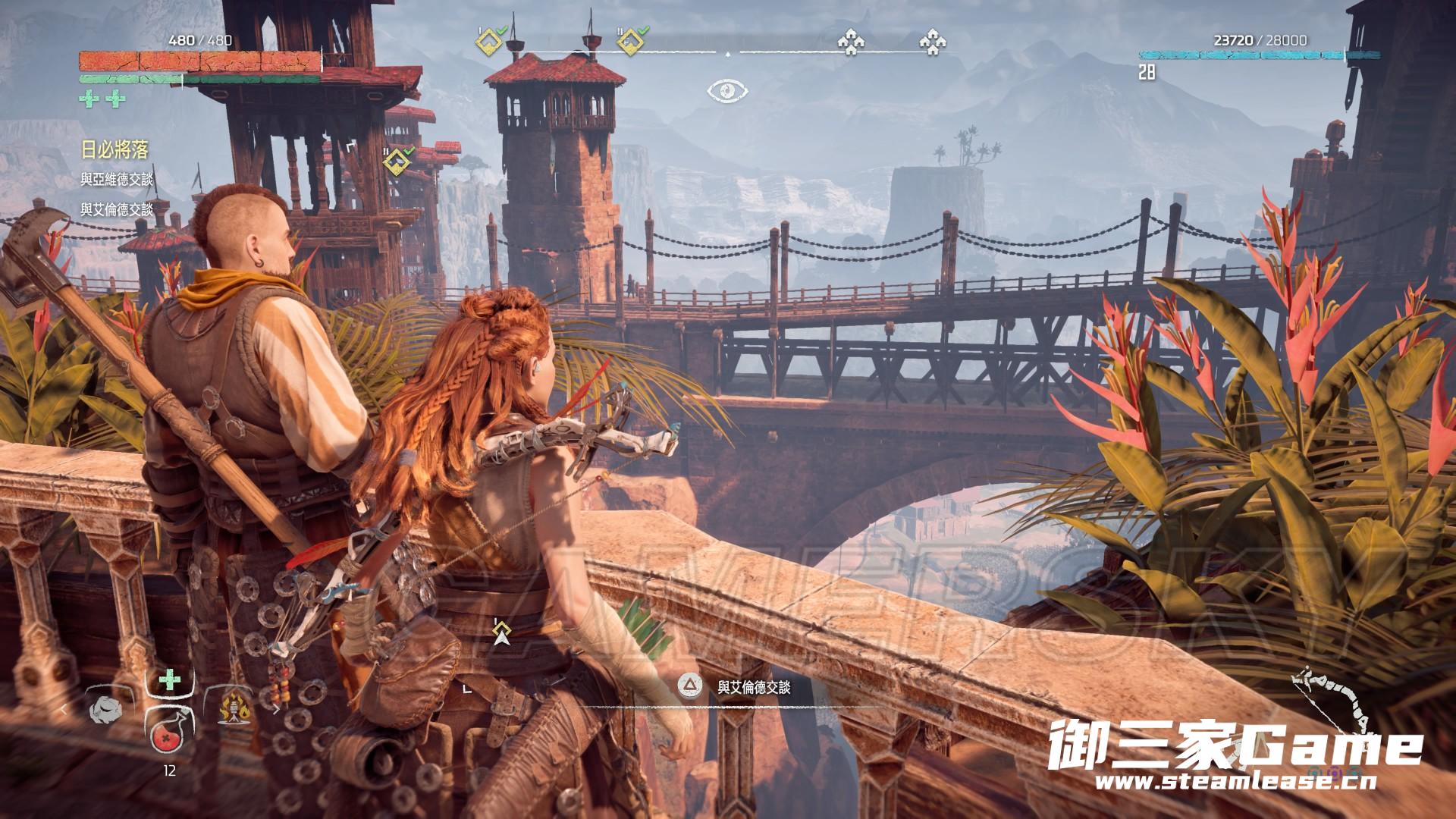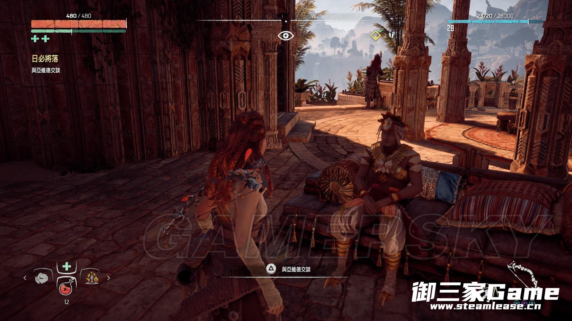 走出地下室亚萝伊发现正要赶往太阳宫殿的德瓦尔一伙人,从墙壁上的攀爬点过去前方水渠。