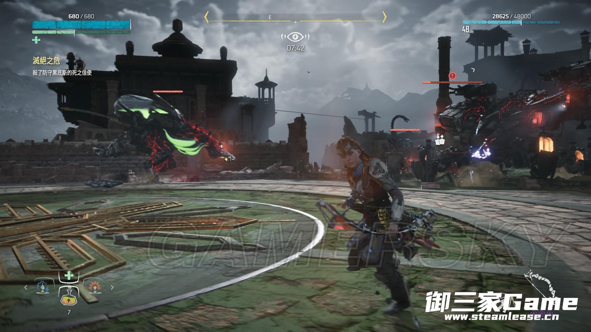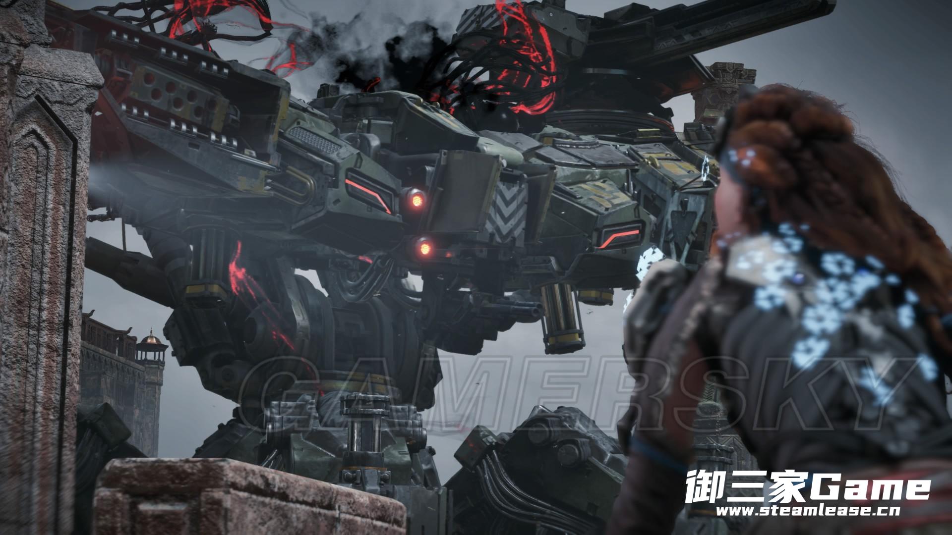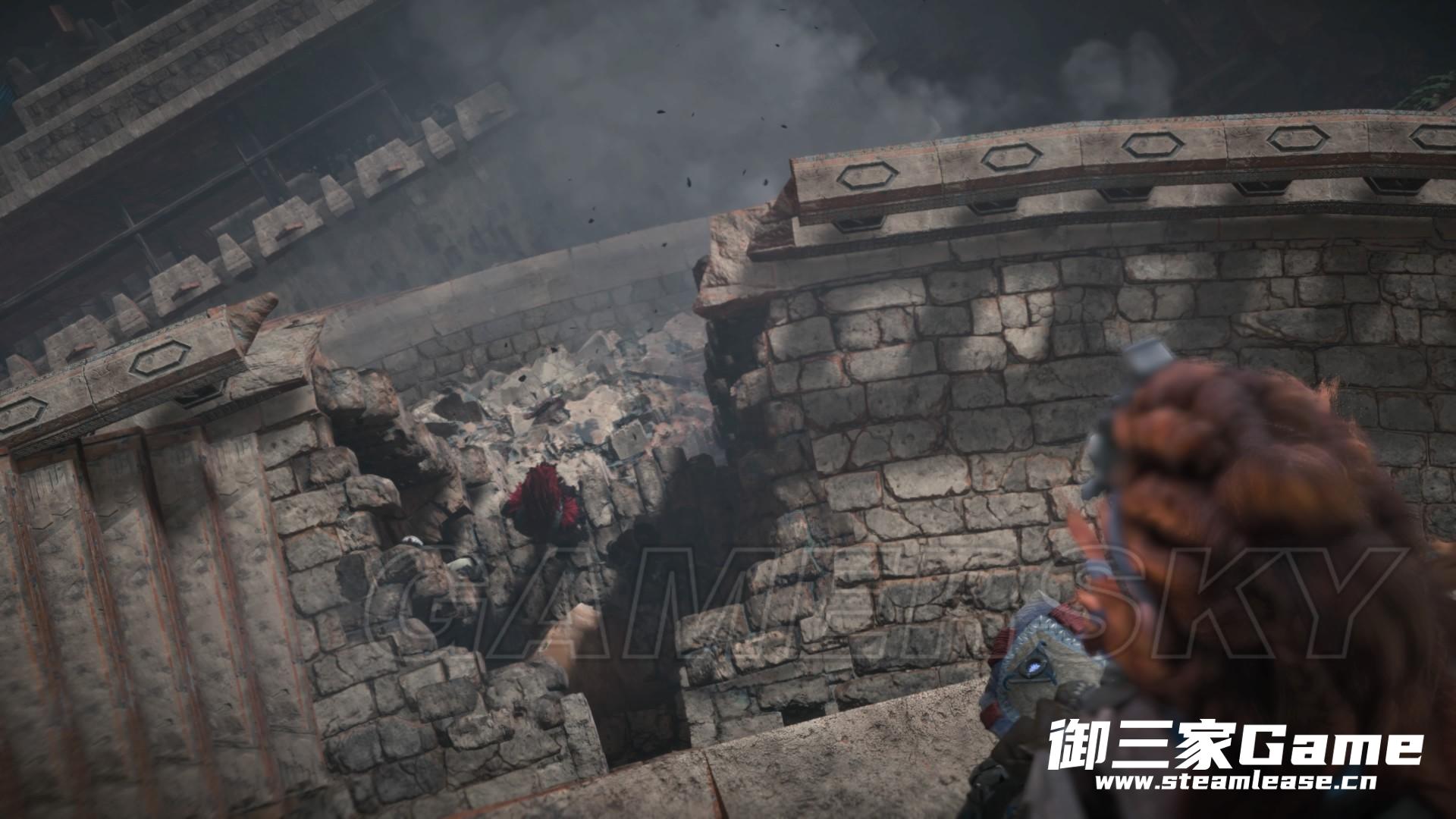 再来便是它肩上的炮台,战斗中最麻烦的是两批援军,第一批清野者和长腿兽,第二批风背兽和劣化者,此时就绕场跑酷,让艾伦德它们分担点机械兽过去,找掩体躲藏。