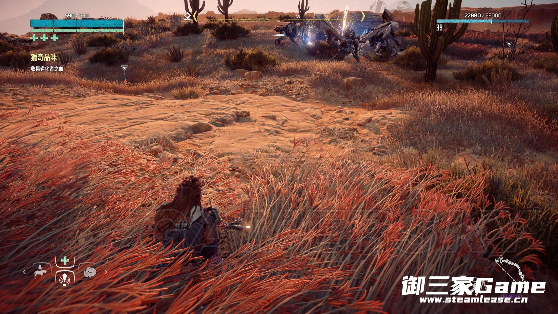 锯齿兽之血并不能满足他,他想要试试劣化者之血,布林告诉她曾在盘根峡谷的峭壁上见过劣化者的残骸,让亚萝伊前去拿取劣化者之血。