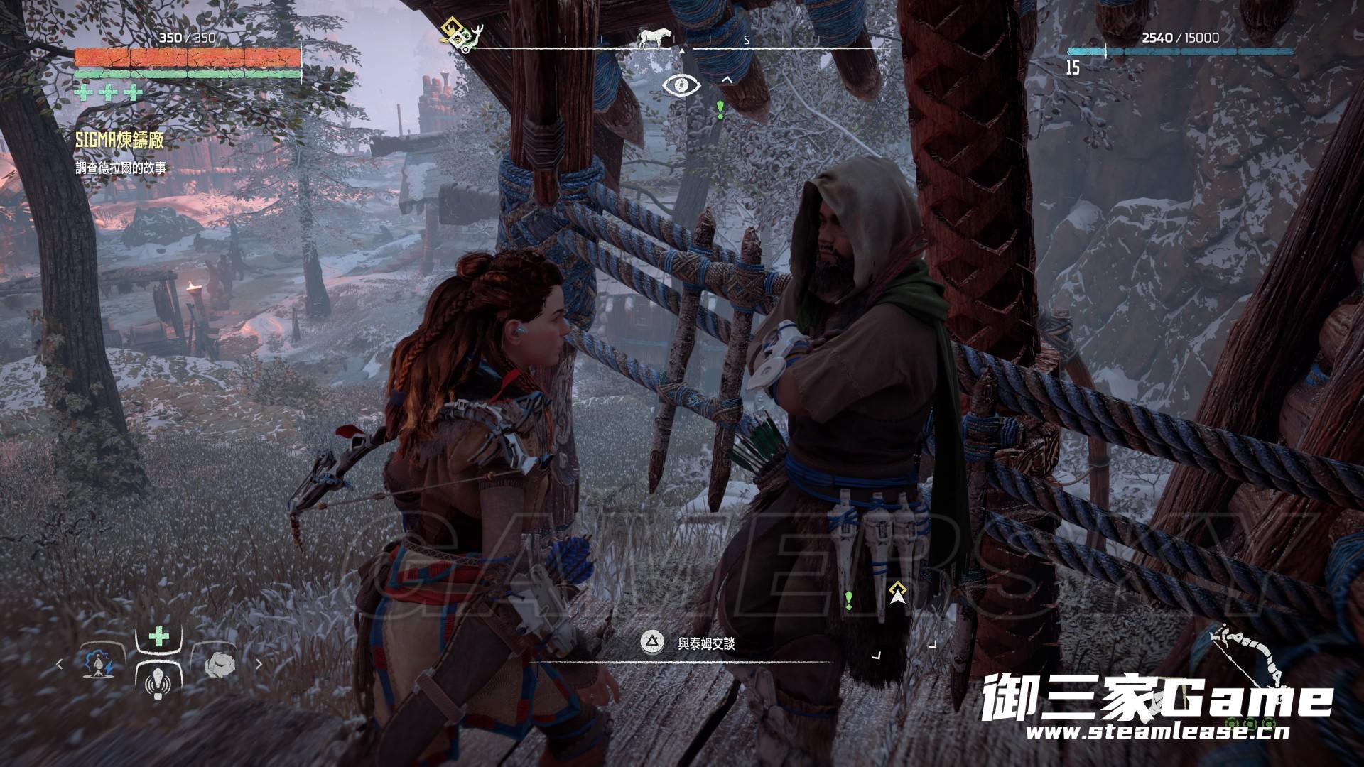 泰姆为诺拉族打猎野猪皮制作盔甲,但他在狩猎中遇到可怕的机器,撤退时不慎将外婆给他的护身符戒指弄丢了,亚萝伊答应尽量帮他寻回戒指。