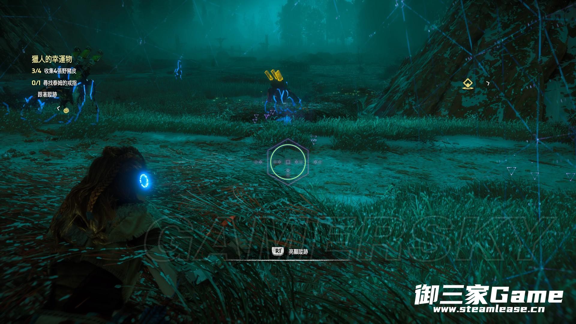 来到泰姆的戒指掉落区域,该区域由草食者和守视者把守没什么难度,使用Focus寻找踪迹并标记出来。