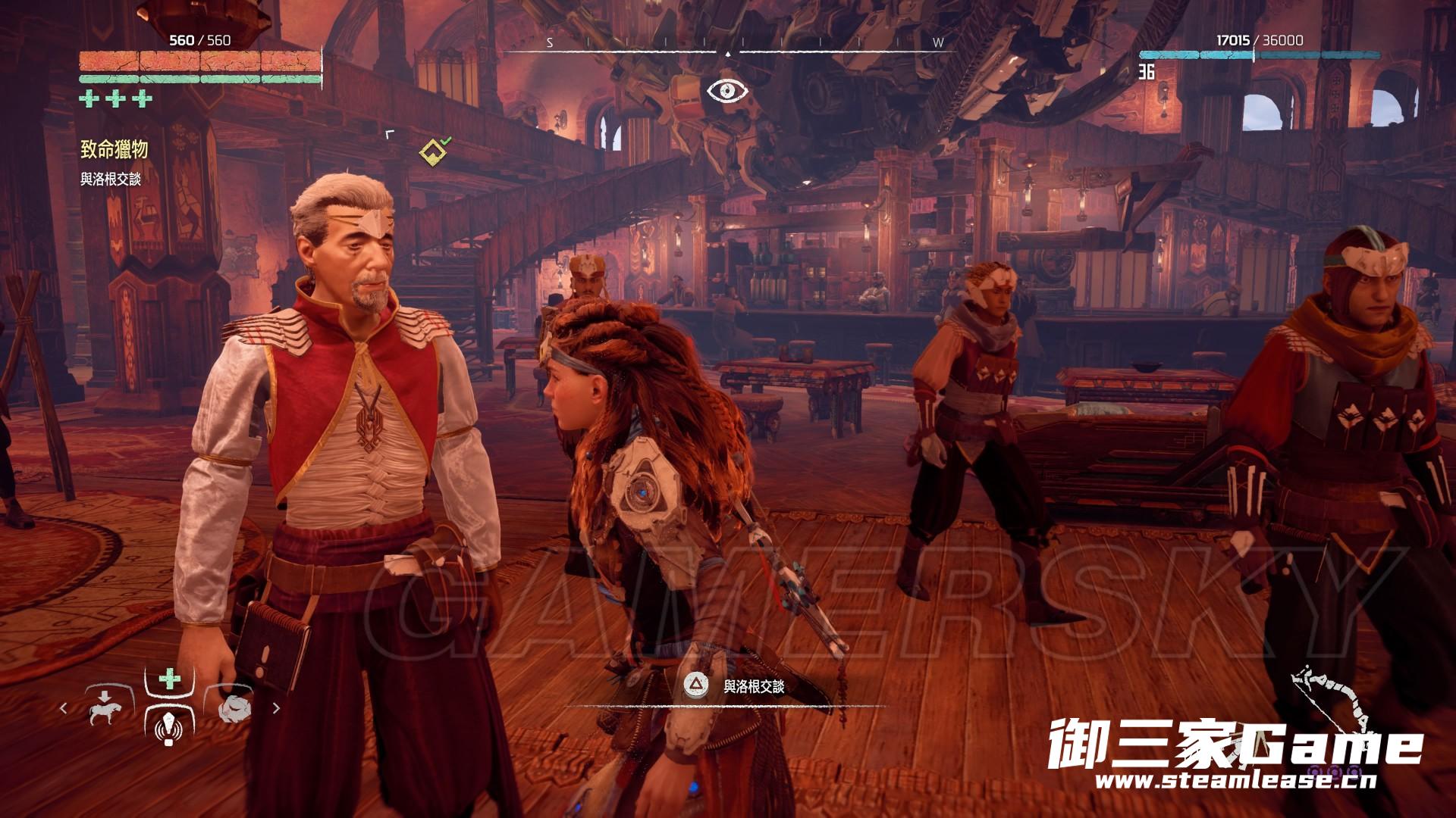 和导师塔拉娜交谈,塔拉娜让刚成为雀的亚萝伊前去狩猎雷霆牙和风暴鸟来提升她在猎人之家的声望。