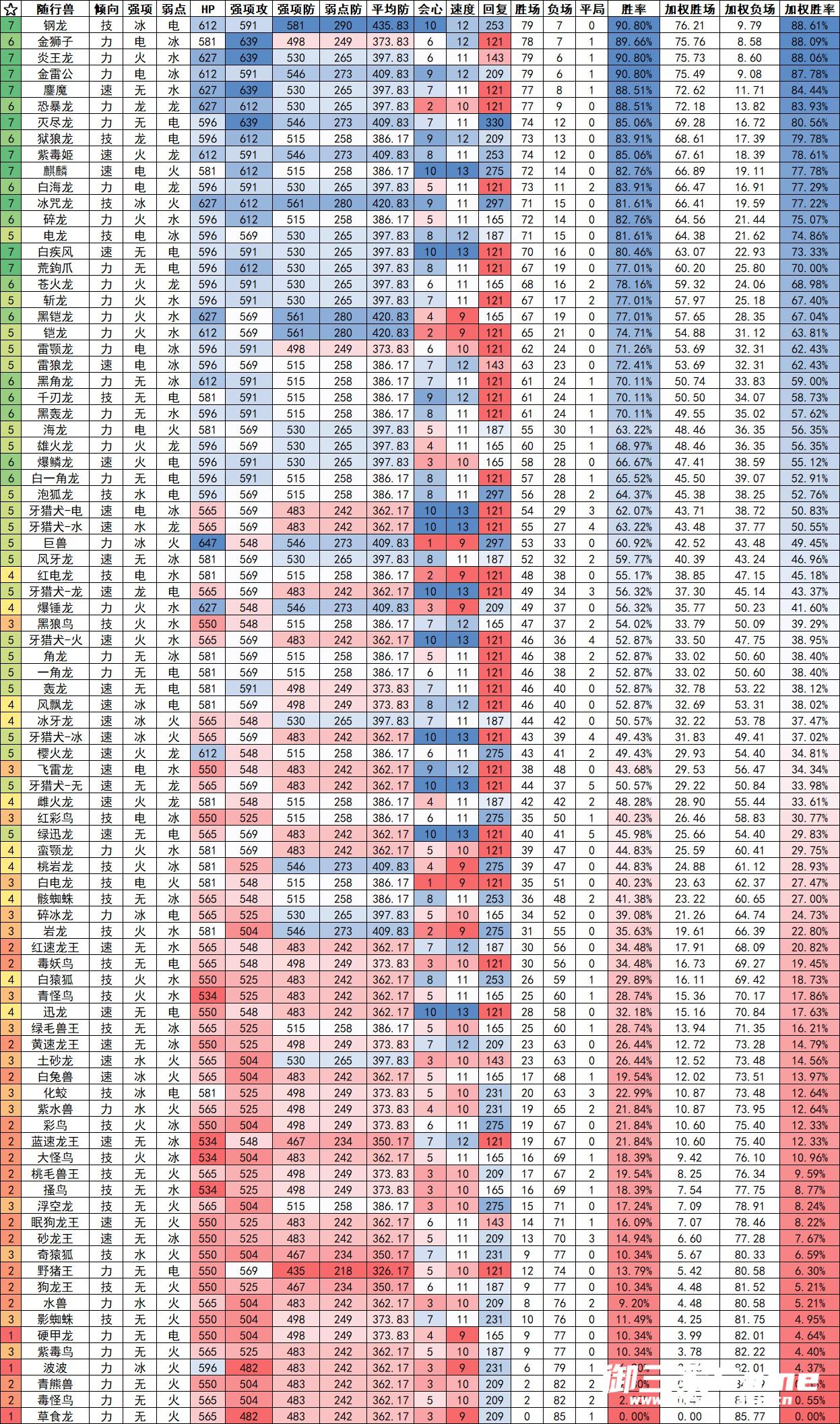 9.荒钩爪和白疾风堪称最惨R7,弱龙又弱电,被各种热门随行兽杀穿了。