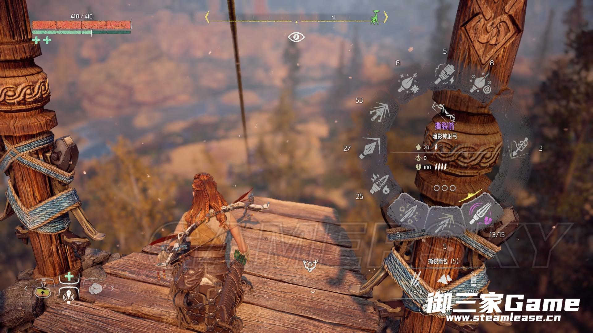 从滑索滑落下来后躲入草丛,直接对其中一只草食者的背部射击,搭上第二根箭后在草食者逃跑前开启专注射击射击其它的草食者,这样开局就能直接击落6-8个燃料罐,接着追着草食者跑再射一只便能轻松完成。