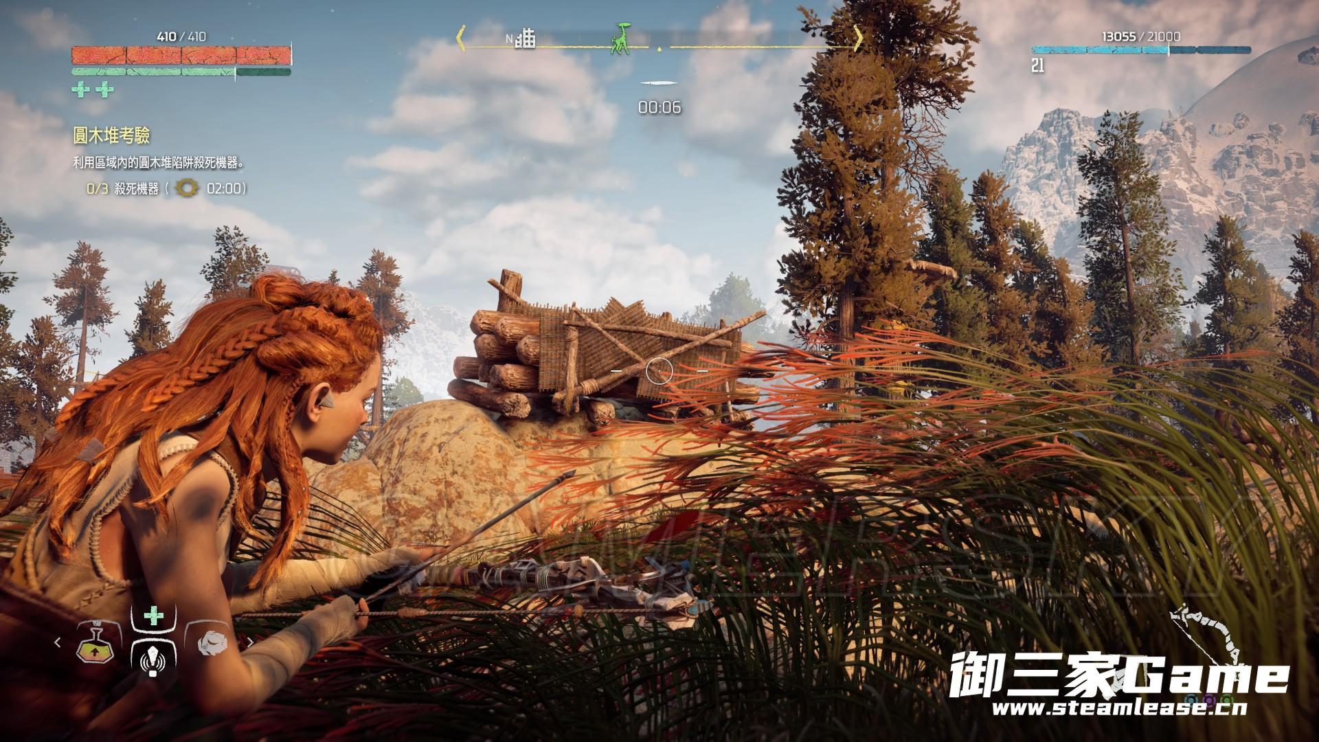 时间上也算是较为充裕的考验,从滑索滑落下来后找场地内的一条道路拉上爆破引线陷阱,任务考验为6只,不过建议可以多拉两条以防万一,然后赶着草食者往陷阱跑便可。