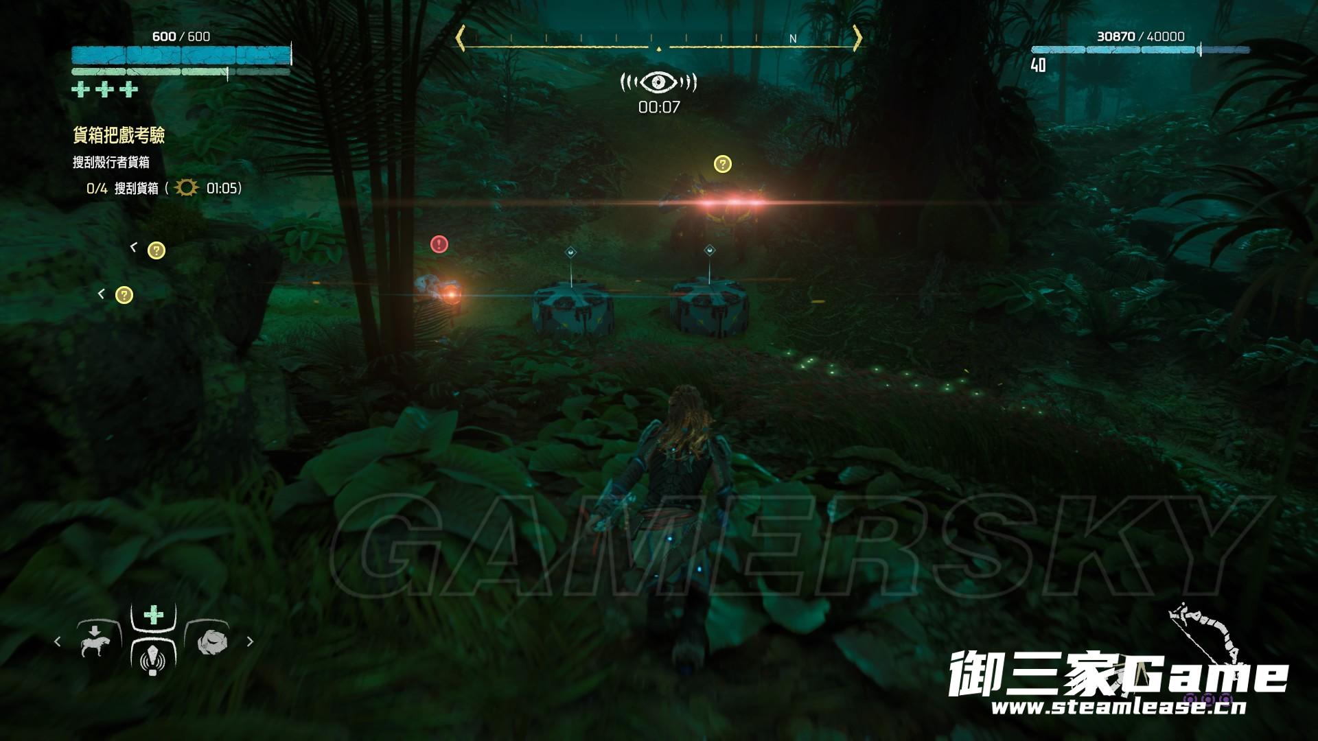 这项考验只要熟知狩猎地的货箱分布位置并不难,首先右边的滑索滑下来后往前直走便能找到两个货箱,搜刮拿取。