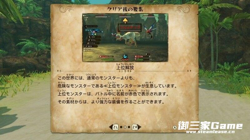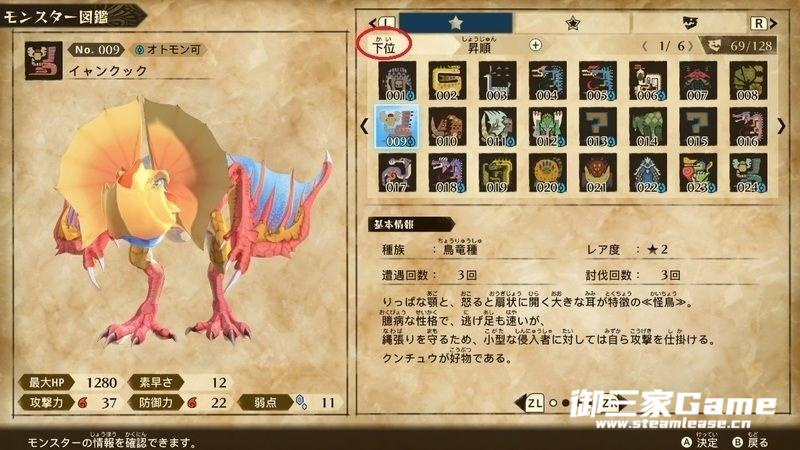 通关后,怪物图鉴中会新增加一个【上位/下位】的顶部标签,按【L/R】键可以更改。如果在击败了某下位特定怪物,但在没有击败上位怪物,则该怪物的上位图鉴不会解锁。