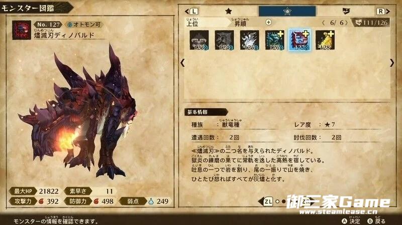 ※烬灭刃斩龙没有下位怪物,下方数据全部为上位怪物数据