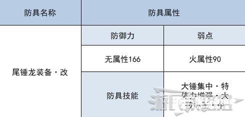 尾锤龙装备·改属性及技能如下。
