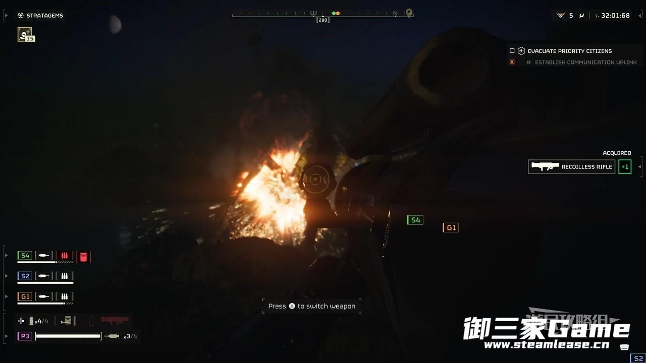 无后坐力步枪的冷却时间比较长,并且不会像反坦克武器那样提供两个武器,而是用补给背包来替代,可以自己使用也可以让队友帮助使用,从而保证持续输出。
