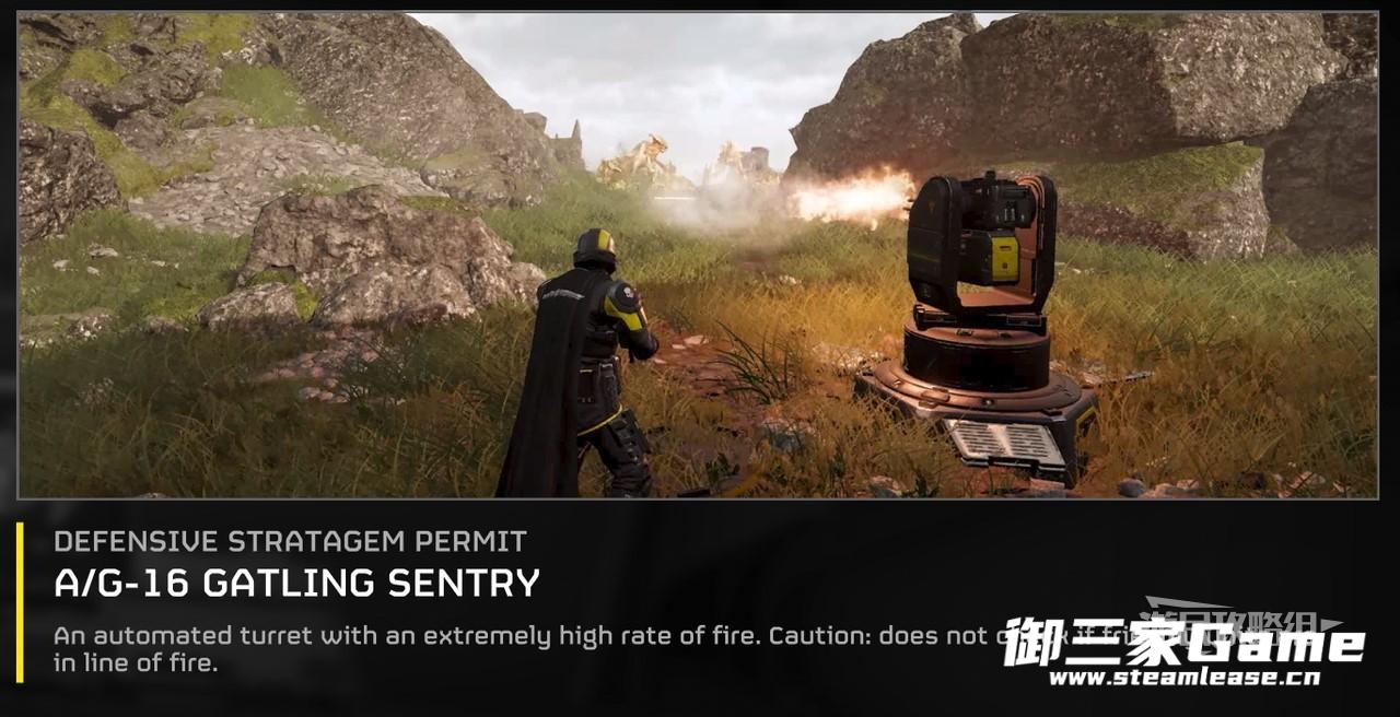 建议始终在战略配备中选择一种防御型战略配备,例如自动炮台。笔者个人偏好加特林哨戒炮,因为射速比较快且灵活,可以轻松旋转并锁定目标。其他有些炮台的威力虽然更高,但移动速度较慢,在部署时就需要寻找更加适合的位置或地形,不如加特林哨戒炮部署要求低。