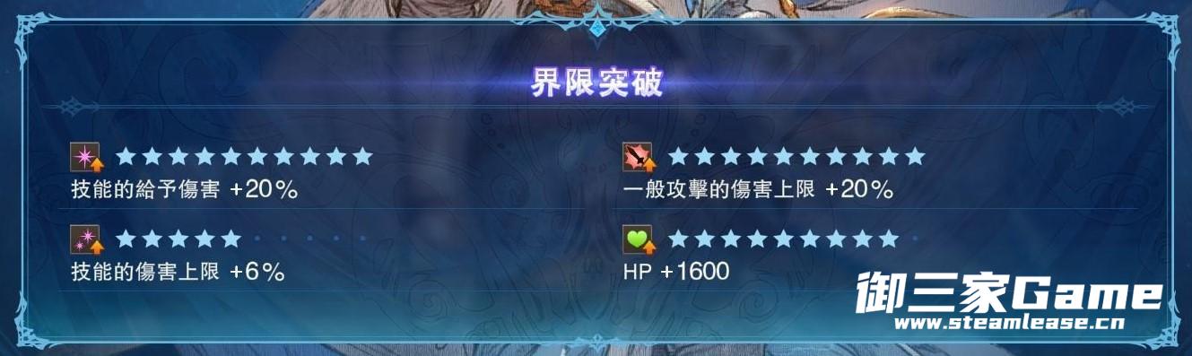 理想是一般攻击上限+20%、技能上限+20%、技能伤害20%、爆率20%