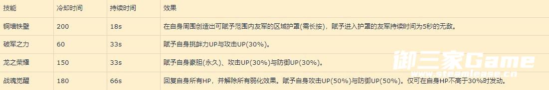 铜墙铁壁:核心辅助技能,18s的超长无敌(而且罩子破了以后还有5s的无敌时间让你跑路)在目前版本可以完美覆盖大部分BOSS特动时间,让你和你的萌新队友能安然无恙度过大运动会。200s的cd看上去很长,但实际上可以通过100%追击+专属减cd+15级迅捷+15级怒涛,打XXYY连段来缩短到一个很理想的时间。(木桩测试是21s左右,而实战中如果BOSS有多部位的话,还能缩得更短)