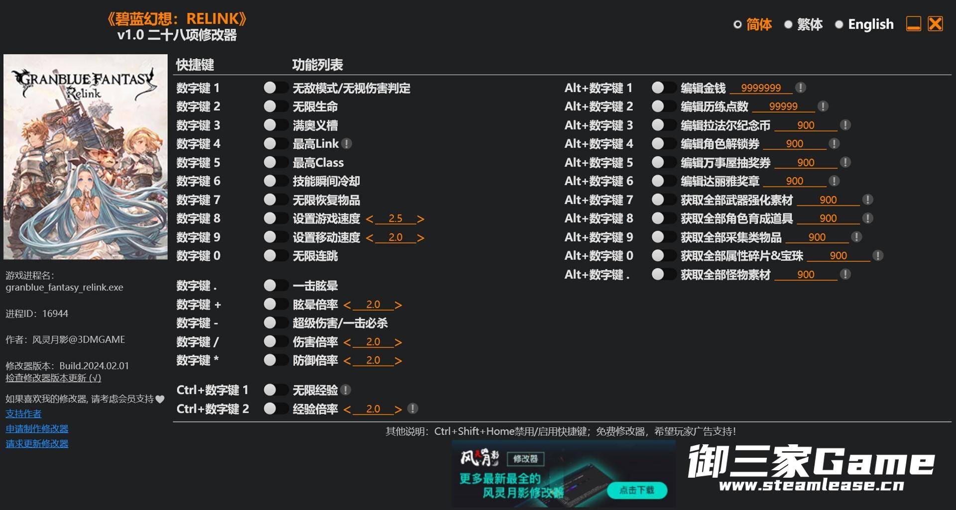 《碧蓝幻想Relink》修改器下载地址:点击进入