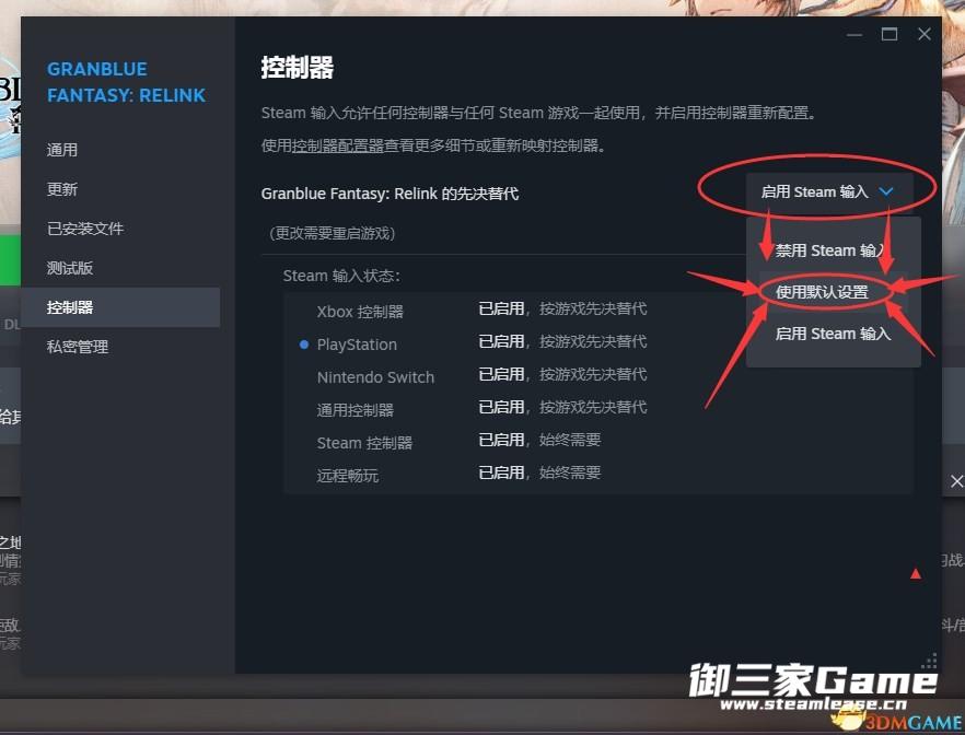 看图就懂,只是把手柄设置成“使用默认设置”即可。