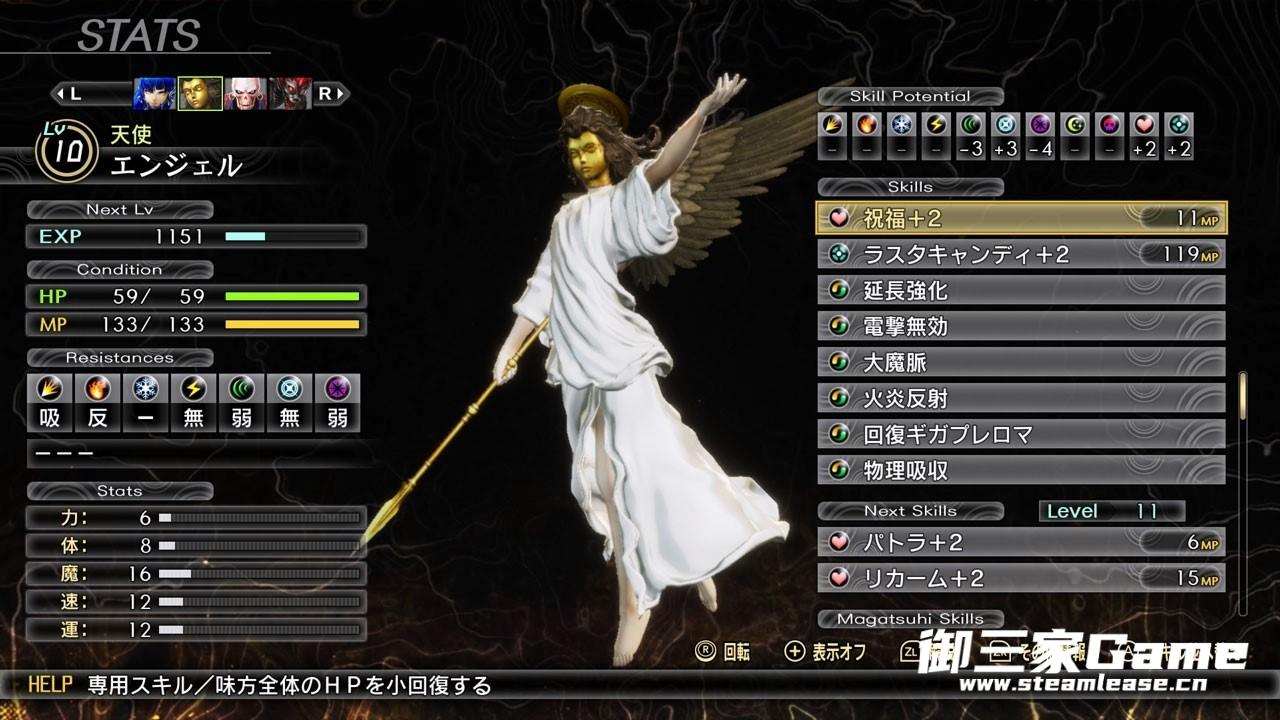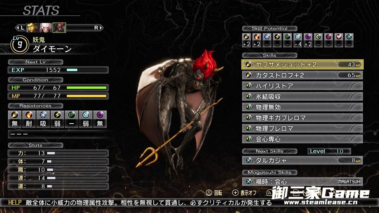 推荐选择技能实用性高且前期就能使用的恶魔(花钱少)。例如下方2薮雨射击+1支援,抗性技能的COST很高,等级降低到Lv10左右差别就会变得很小。现在的COST是天使23864、吐鲁达克18098、戴蒙17738,如果价格没变的话,出售通关特典的木雕山羊获得12500,目前看起来能在前期就快速召唤一只。