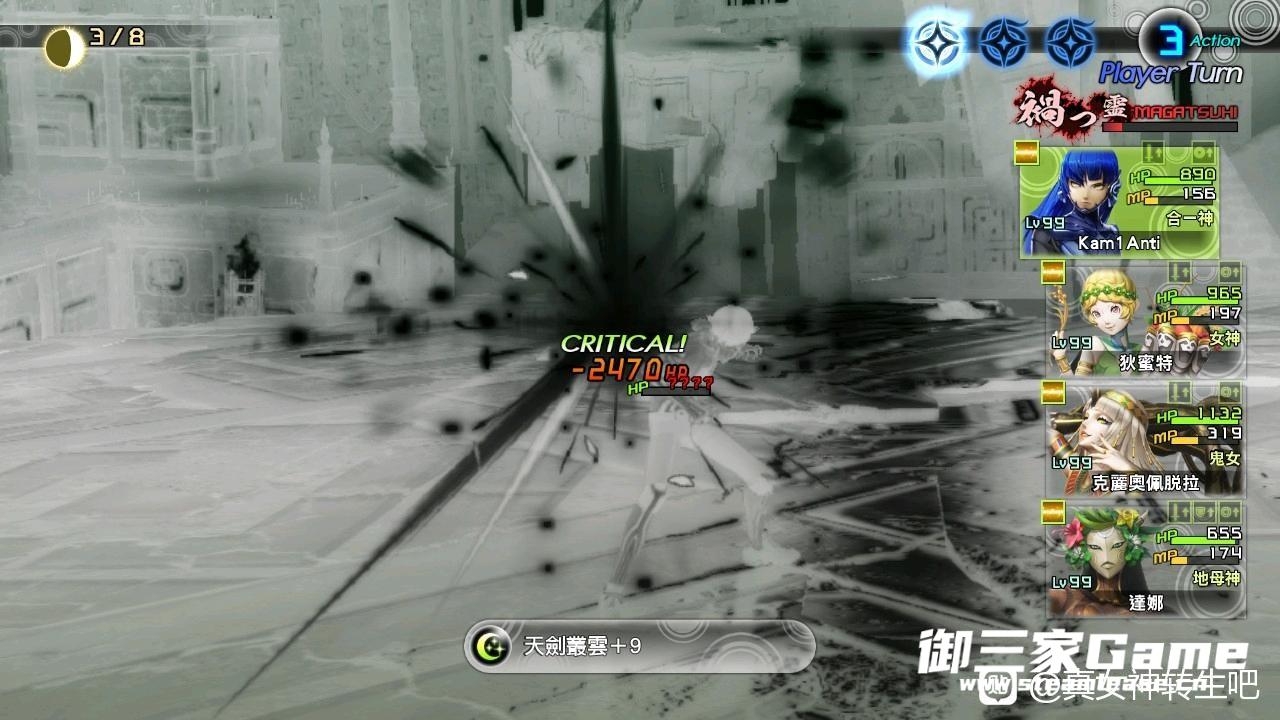 一定要打弱点蹭回合,不会弱点属性技能的仲魔活用道具石头,祸灵会心有就开,记得补蓝,苏摩留给仲魔补蓝,不要舍不得用,我五个苏摩全都用完了。