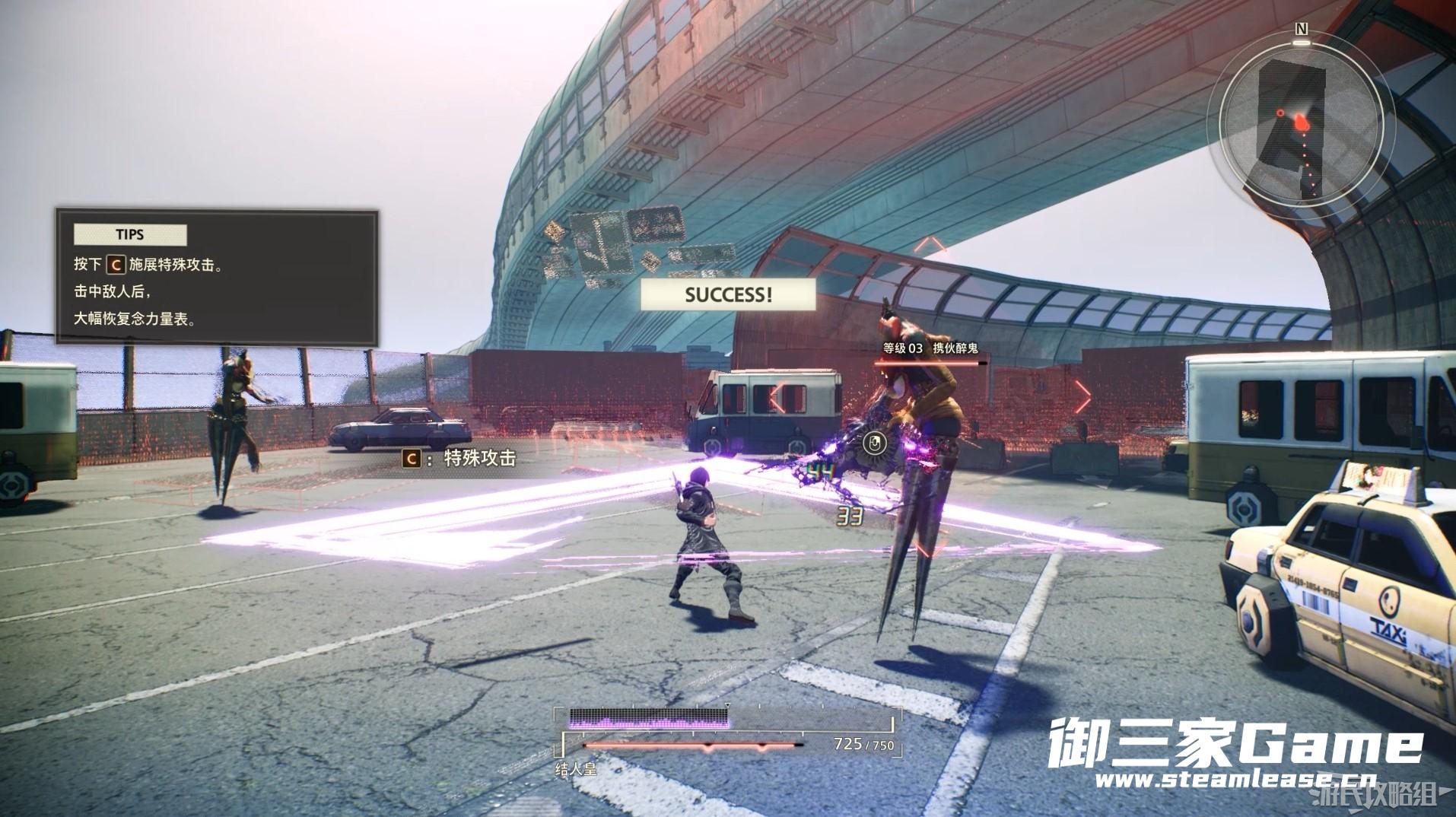 按下C键可以发动较大范围的特殊攻击,特殊攻击在每次连击中只能够使用一次,在命中敌人后能够恢复较多的念力值。