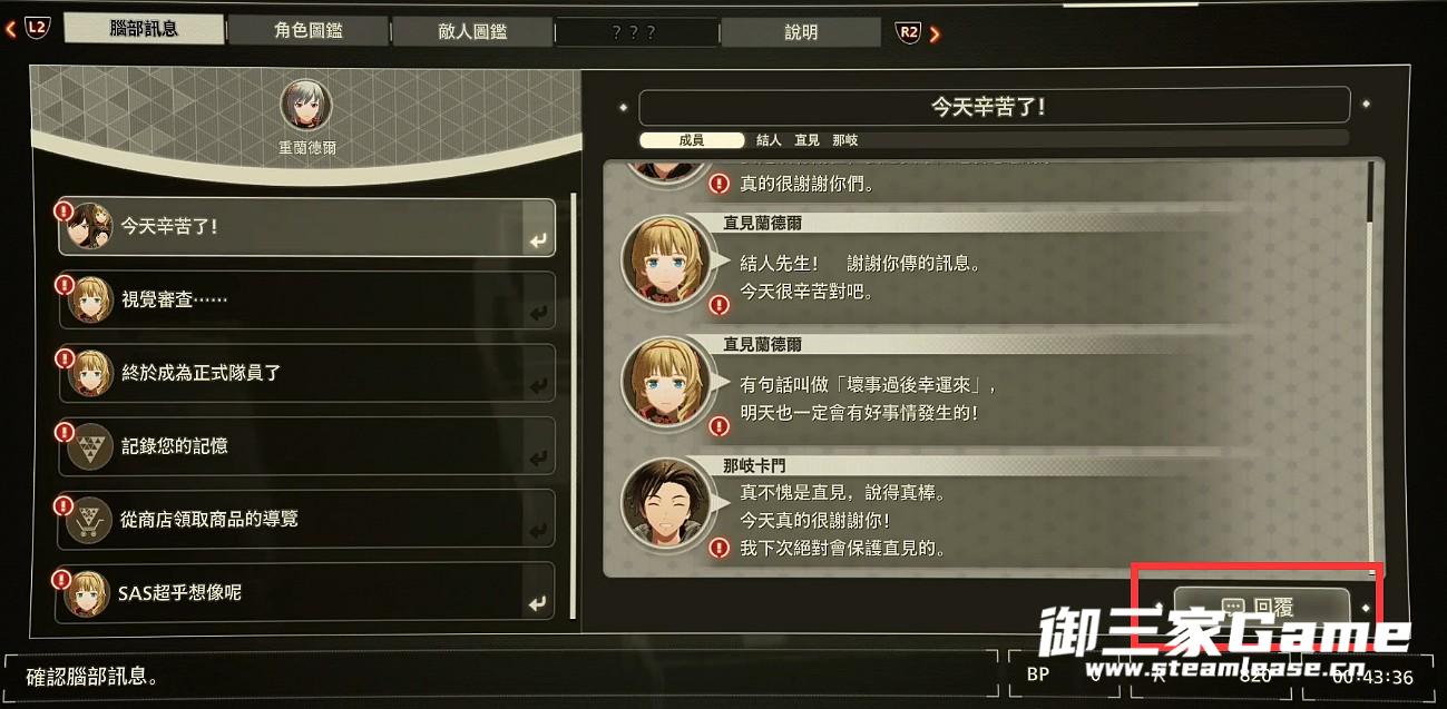随着流程的推进,我们会收到来自不同人物的消息,既可以在主菜单的图书室界面查看,也可以直接打开脑部讯息界面查看。