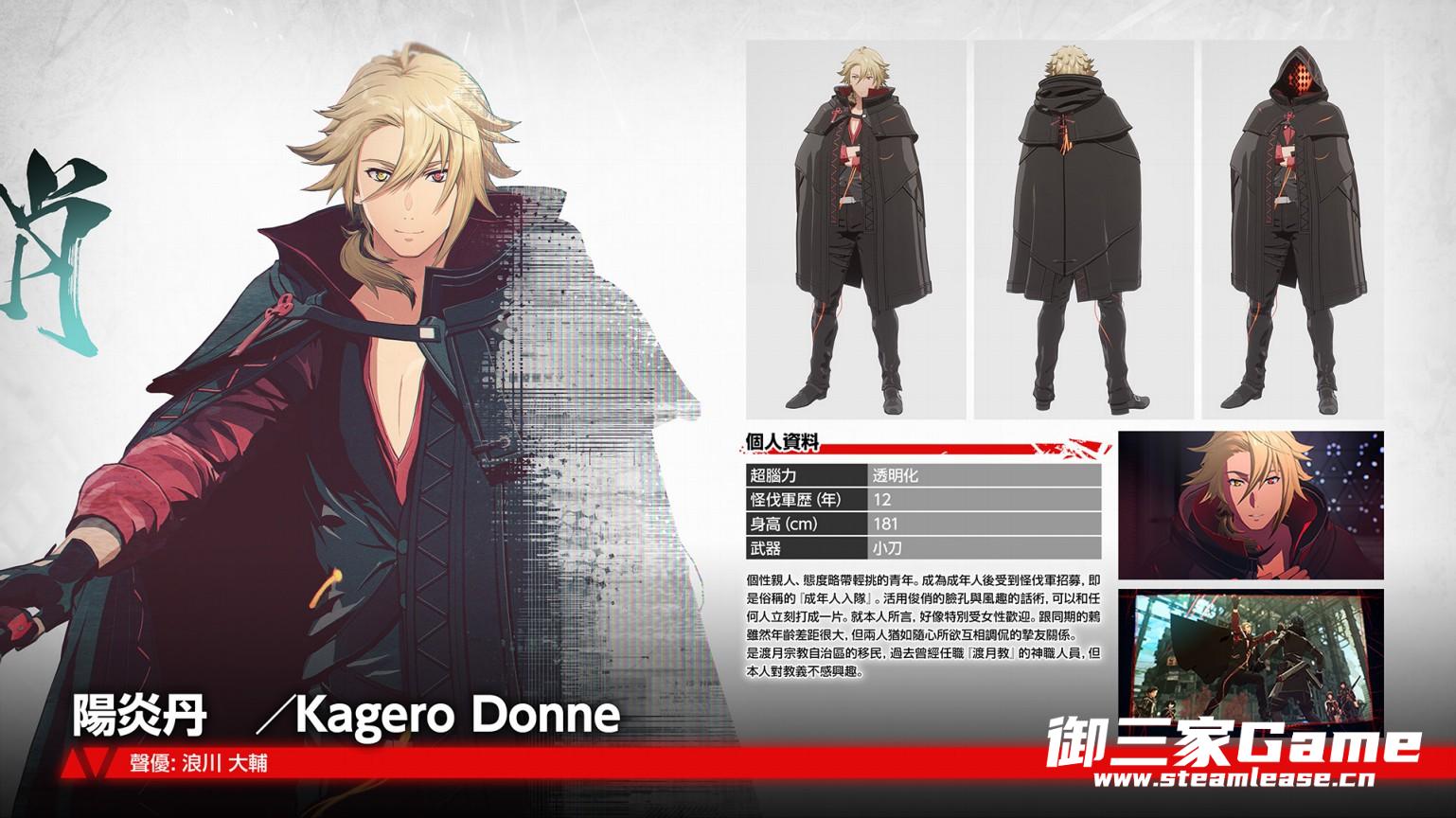 个性亲人、态度略带轻挑的青年。怪伐军中,过了青少年期受到招募,这种入队方式俗称“成年人入队”。活用俊俏的脸孔与风趣的话术,可以和任何人立刻打成一片。