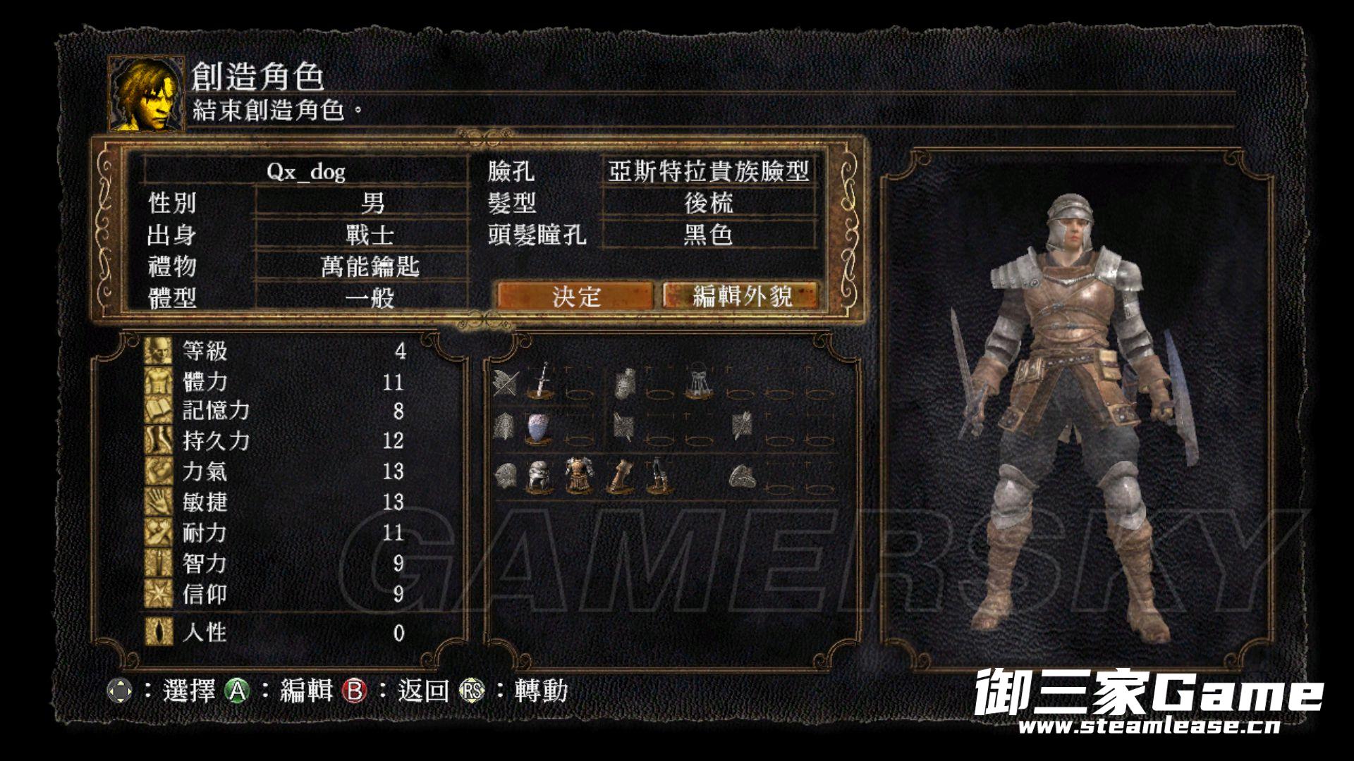 出身:职业的出生影响前期过渡,新手不熟悉翻滚建议选择战士或骑士这种前期有一面较好盾牌的职业,选战士亦可以通过游戏内加点加成法师号。