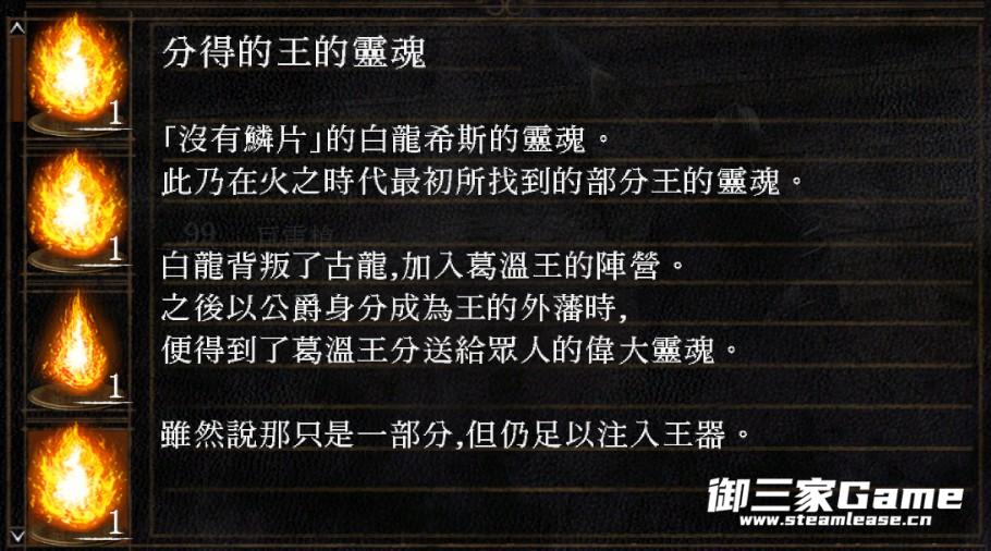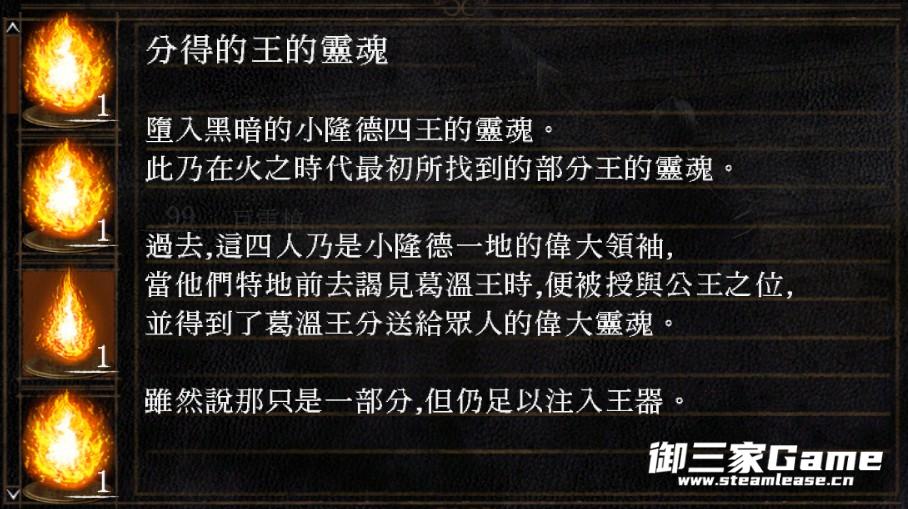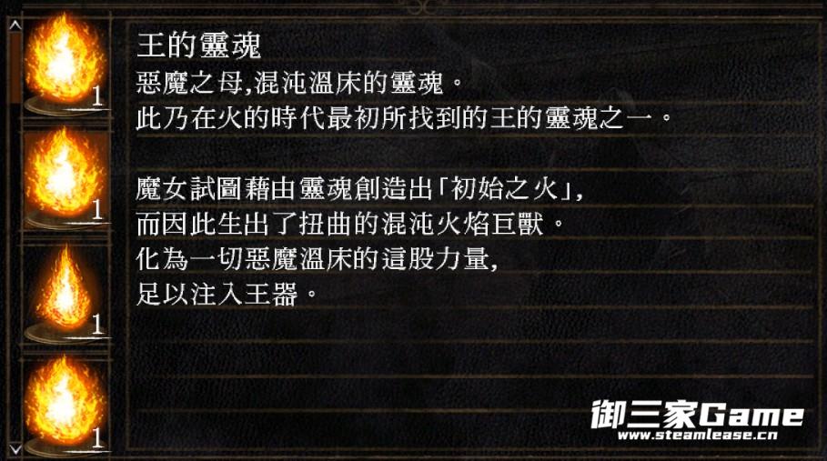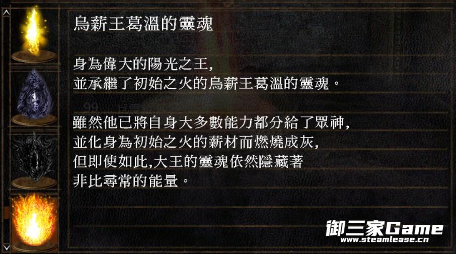 ·魂一,初火诞生,魂世界力量充沛,葛温等人拥有完整王魂,强大到能将不朽古龙灭族,无数英雄死于古城门口由龙骨制造的钢铁巨偶手下,英雄不具备传火的资格。