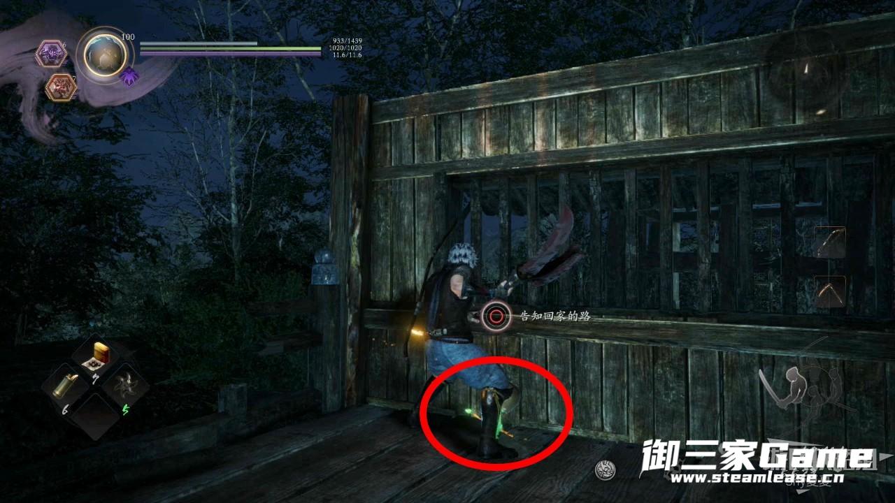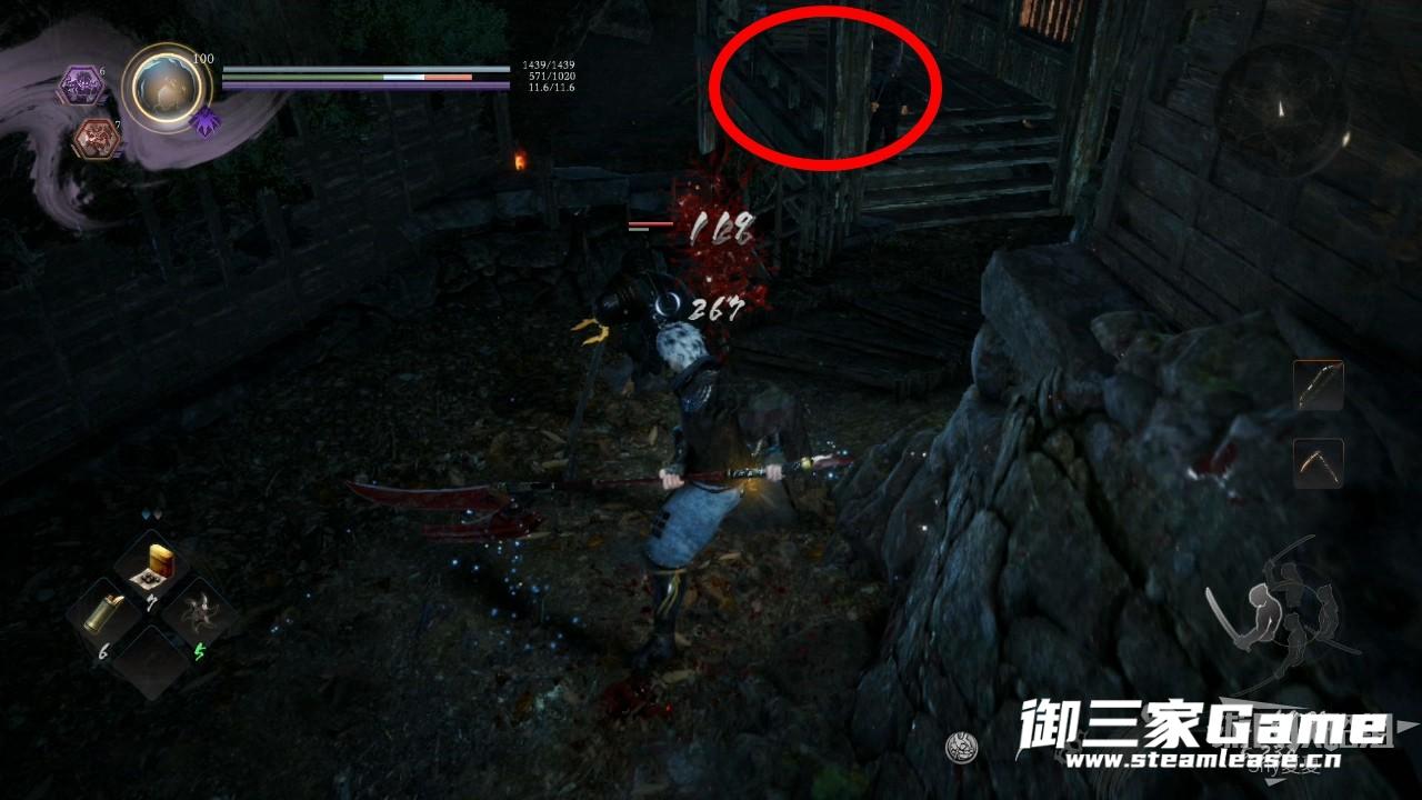 在屋子外侧可以获得一个木灵,右下方有敌人,但是无关紧要,不打也罢。