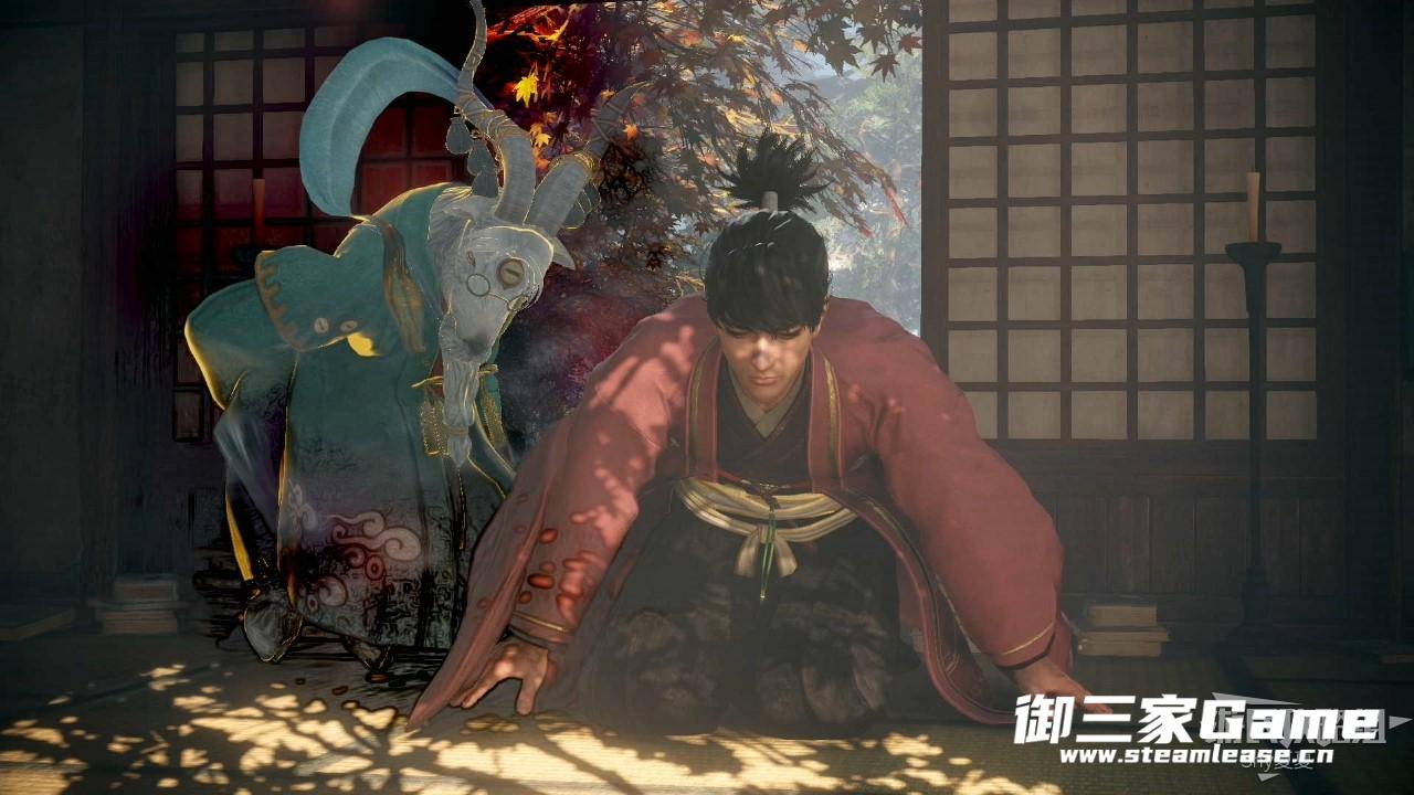 进入屋内,向下看,有一个蹲着的武士(导致常暗的贵)和一个敷次郎,把敷次郎杀掉之后,拉开距离,对武士使用弓箭,他的头就会爆掉,长出一个头(好像生化危机)。这个精英怪名为辘轳首,他会喷火、喷毒,近距离扫尾攻击,这一关后面会有很多这种怪物,这是第一次见,大家试试手。击杀之后破除常暗(1/2)。