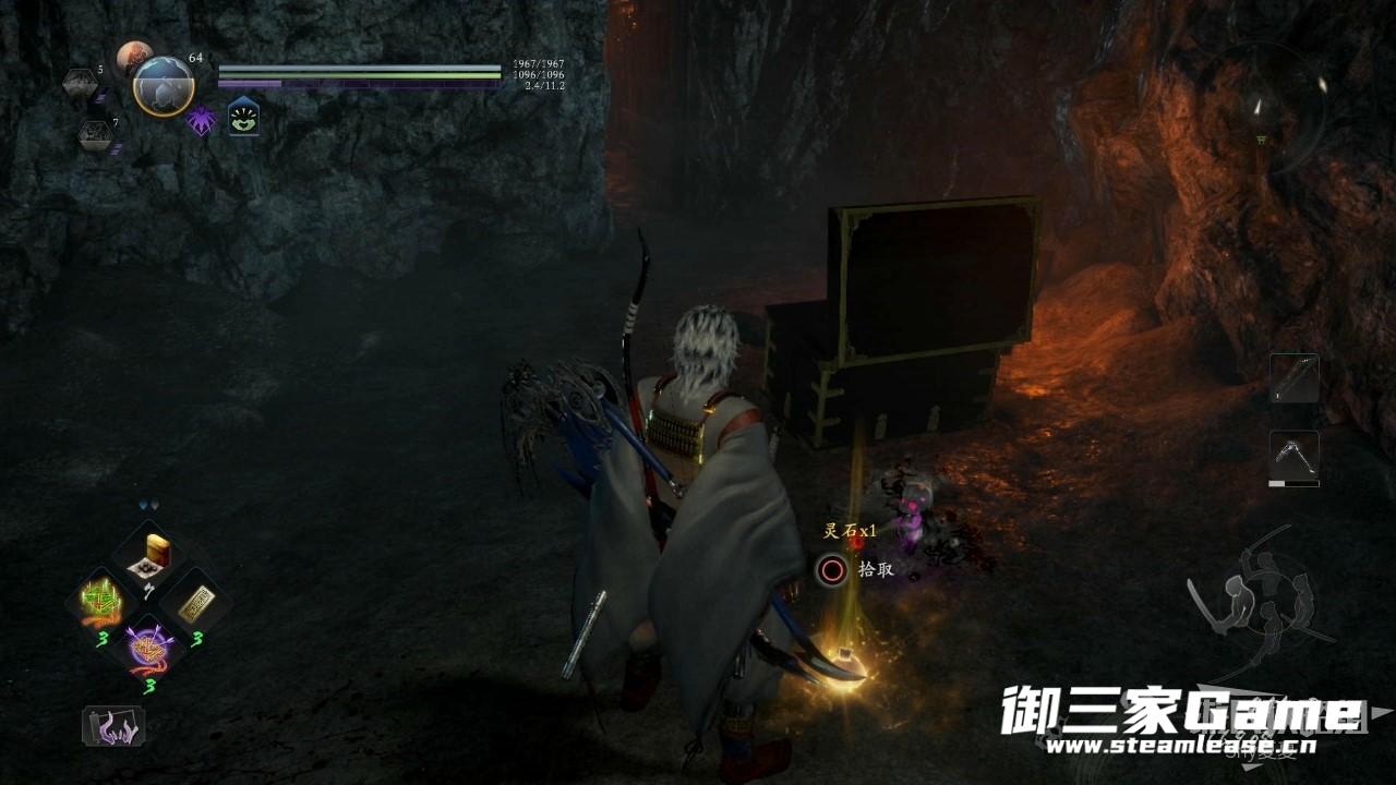 跳下来之后,向前走(向后走有一个小屋子,屋子里有古笼火,击杀后有一个宝箱),进入屋内,入内有一名武士,小心对付。