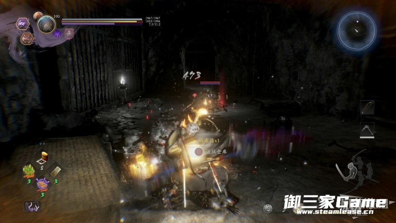 破除常暗后,进入他后面的房间,那个房间有一扇门,这扇门通往之前说过的升降梯中层。后面出去就是第二个神社了,但是这里不建议从这里出去。而是回到刚刚杀敷次郎折返的斜坡处,顺道把路上之前没开的宝箱都打开。