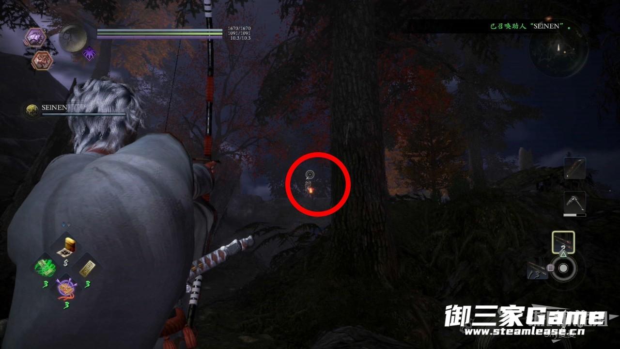 这个任务还是和小六一起进行,而且还能召一个助手,这样开局就是三打一,开局后向前走,拱门上方有个敌人可以用弓箭秒杀。
