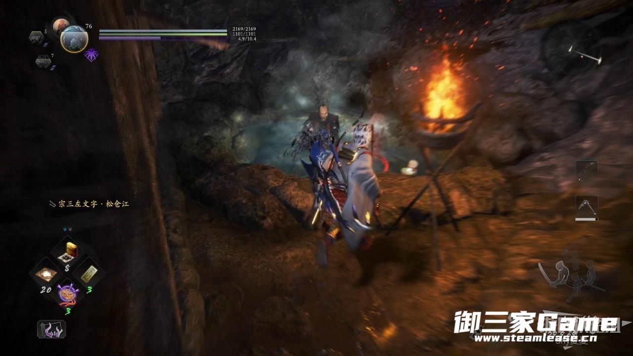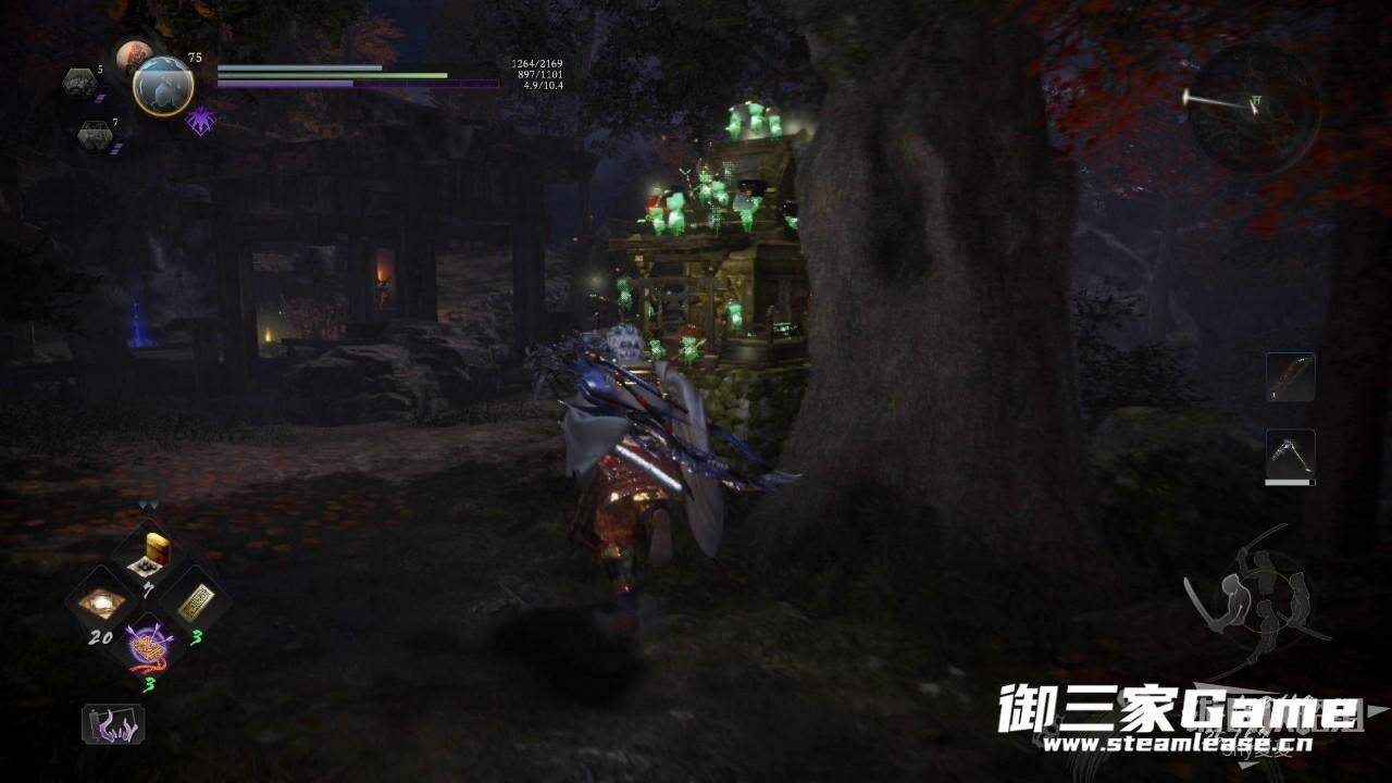开局之后,从藤吉旁边的房子里跳到下层,在神社休整一下,向前走,前面都是鬼和武士的战斗,可以等他们打得差不多了去补刀。