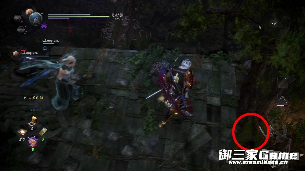 击破红色的装置(建议使用妖怪技快速击破。),破除常暗(1/3),森林里可以拾取一个木灵(2/7),具体位置再下图树右边的红圈处。