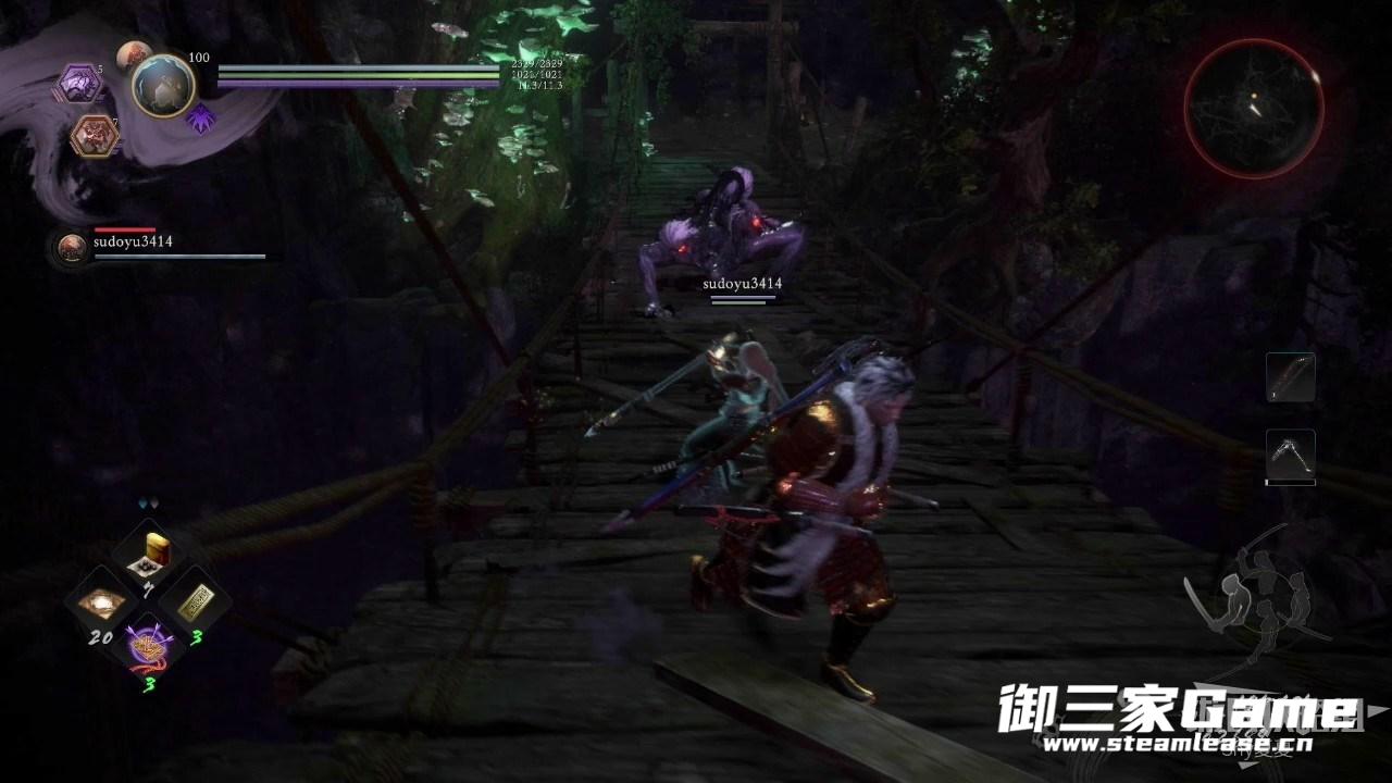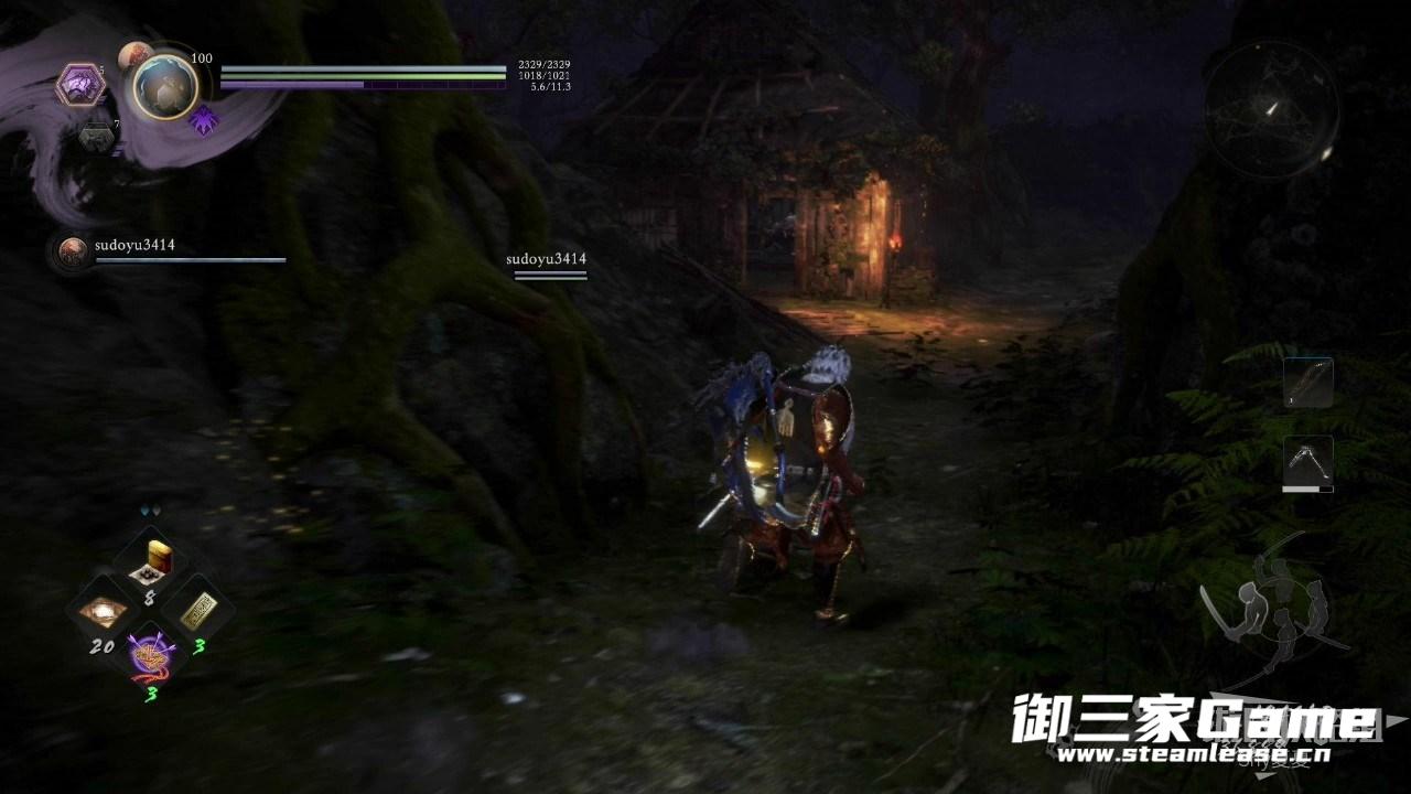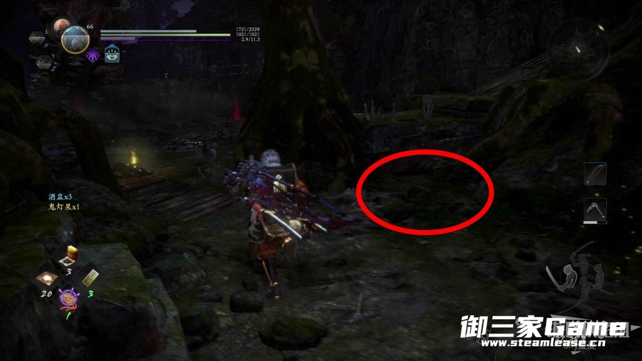 穿过森林,会看到一个屋子,屋子外面有一只饿鬼,里面有一只山姥,难度不大击杀后穿过屋子,再屋子另一边可以看到一个魑魅,用来兑换道具。
