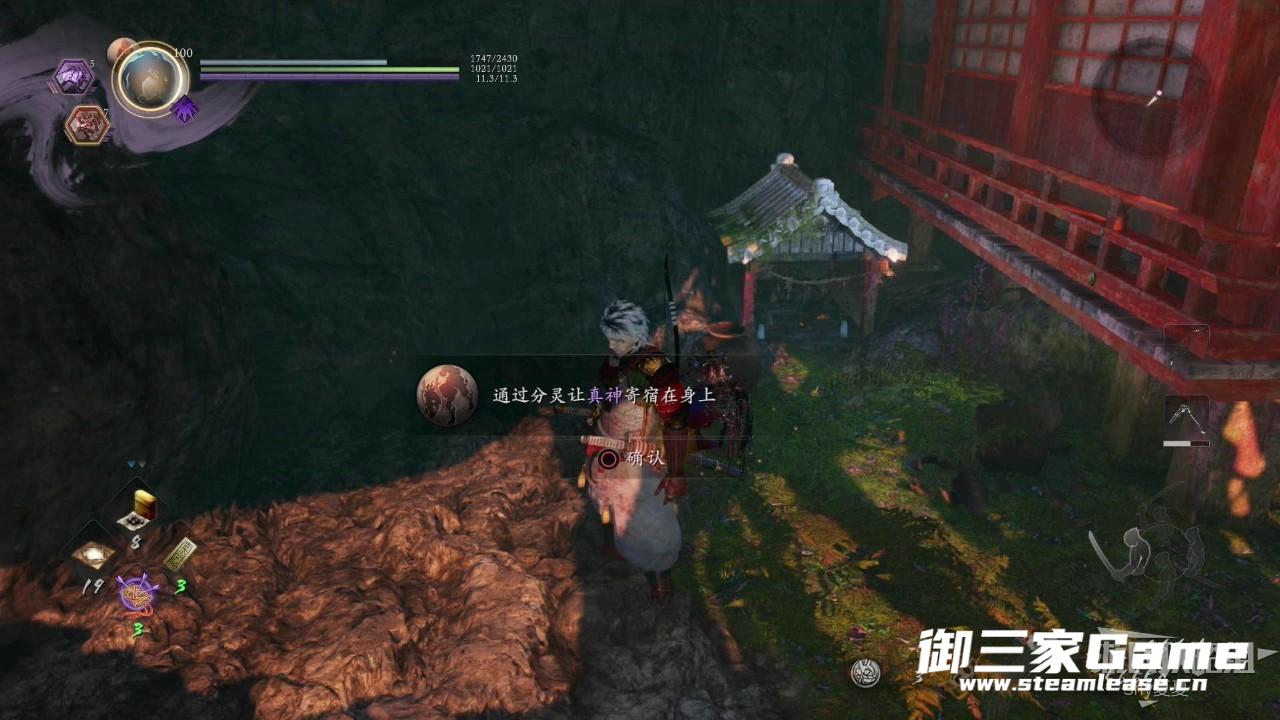 战斗结束后,在祠堂右边可以获得一个宝箱,左边看到松永秀久,与之对话获得守护灵真神。同时,任务完成。