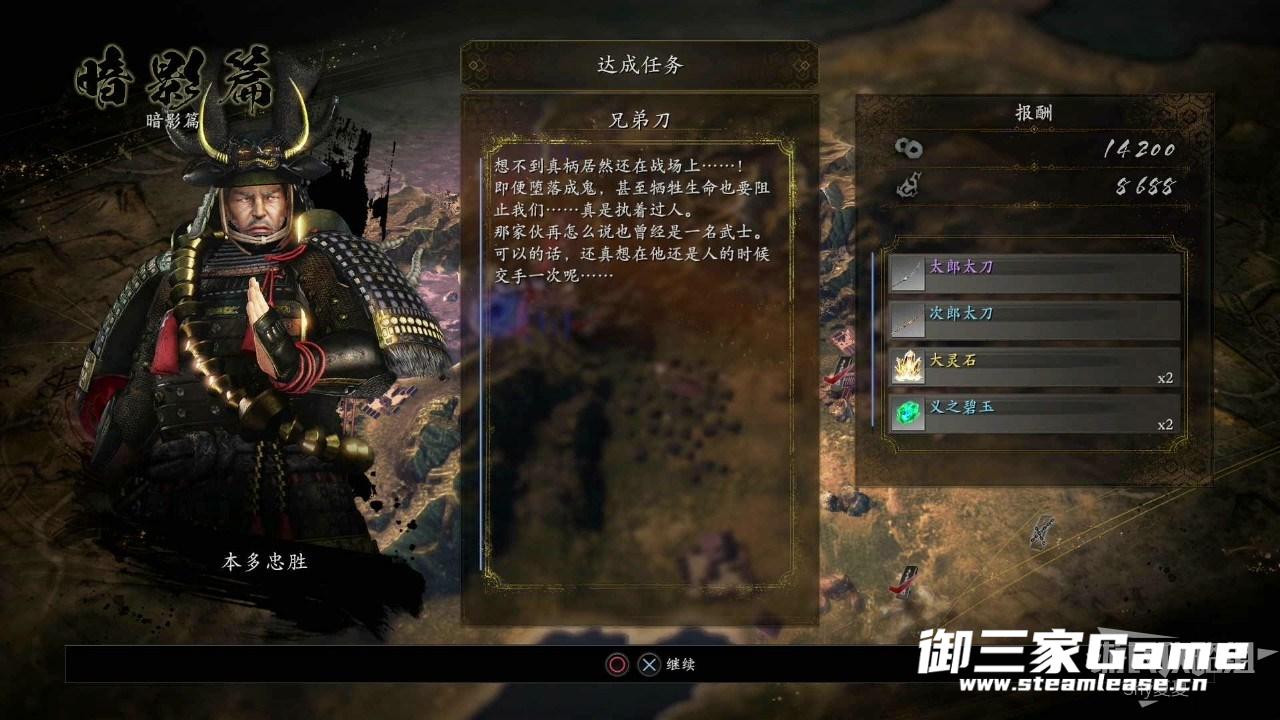 报酬:太郎太刀(水属性)、次郎太刀、大灵石×2、义之碧玉×2、金钱14200、精华8688