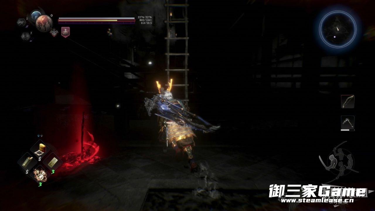 拾取后,前往院子右前方,能看到一个梯子,梯子旁的常世里是一只三目八面,杀掉之后,爬上梯子。