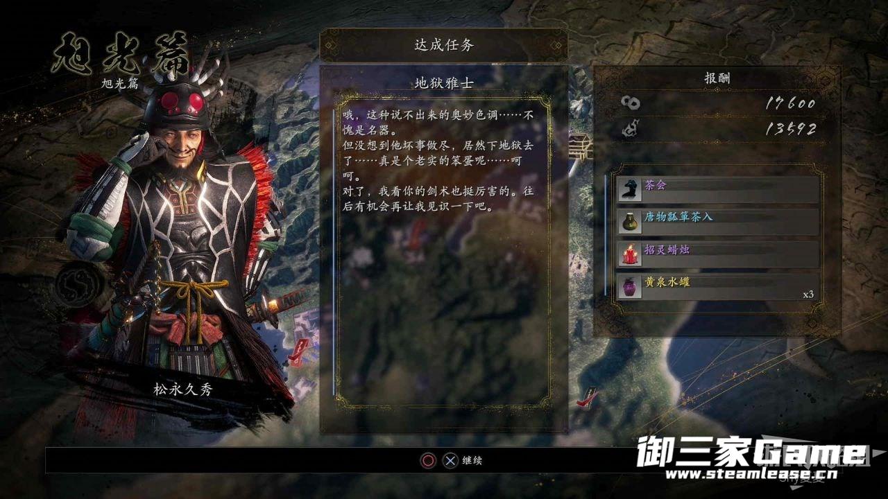 报酬:动作“茶会”、唐物瓢箪茶入、招灵蜡烛×1、黄泉水罐×3、金钱17600、精华13592