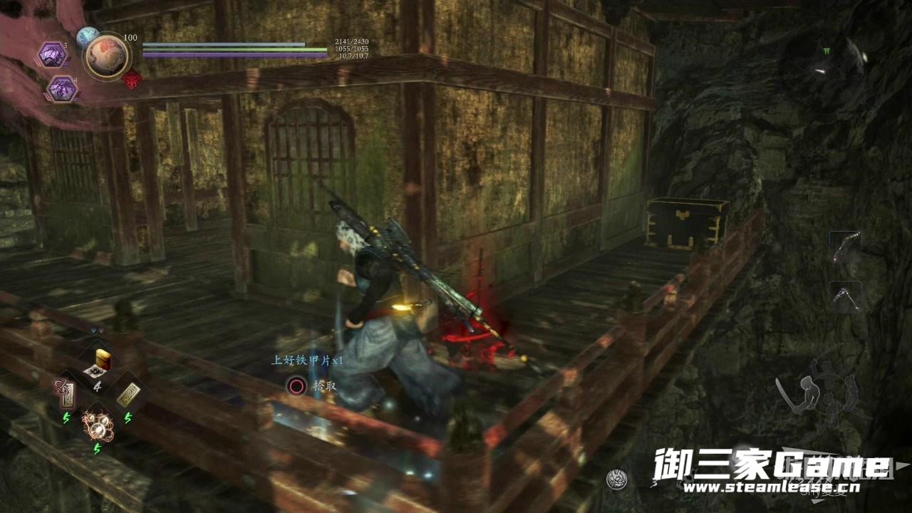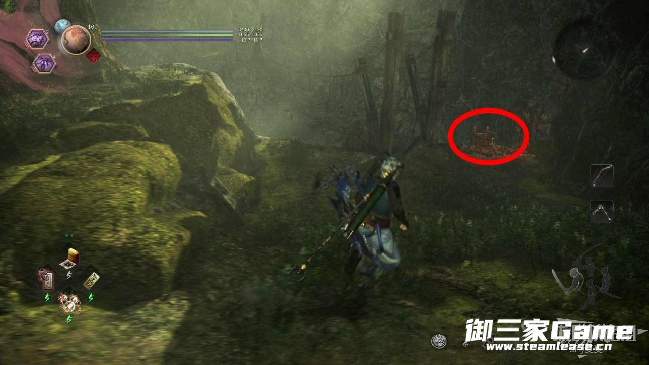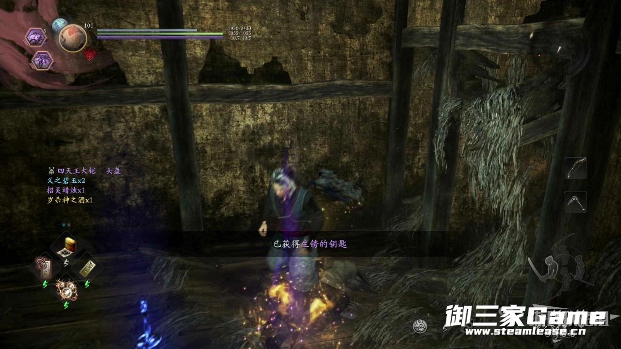 通过木桥,有一只姑获鸟,击杀之后,一只向上走,房子里可以获得生锈的钥匙。