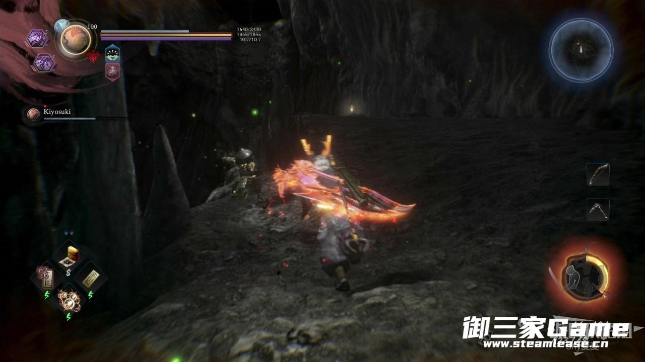 出了山洞一直贴着右墙走,会看到常世,常世里面是一只独眼鬼,击杀之后贴着右墙继续前进。