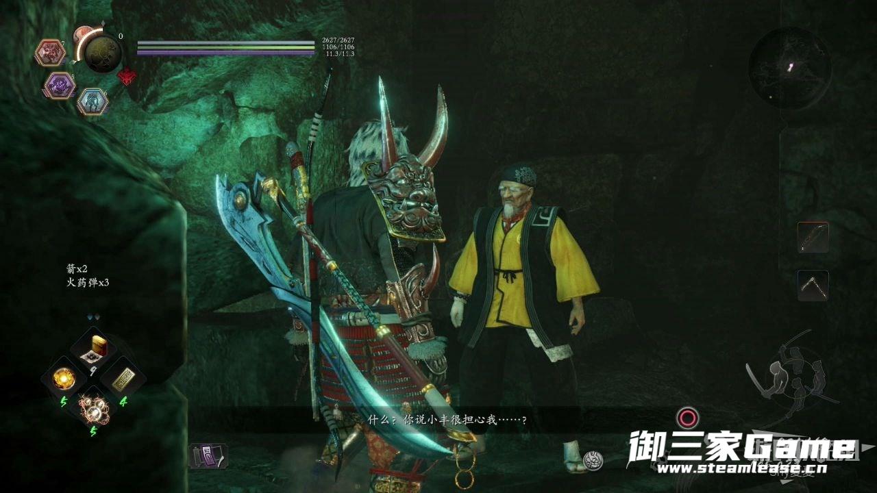 进来之后进入常暗,第一波敌人是山姥和火枪手,之后独脚踏鞴出现,击杀之后破除常暗,与老人对话,完成任务。