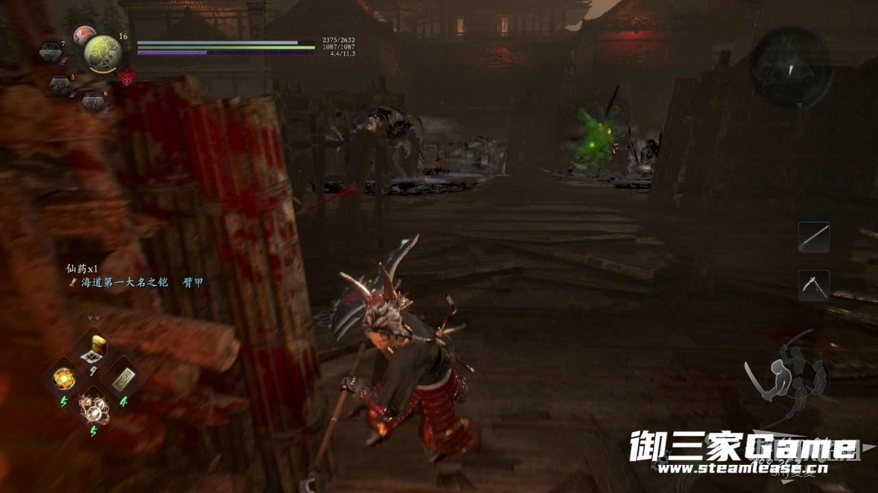 开局之后,桥上有很多敌人,第一波:亡骸武者、猿鬼;第二波:鬼火(雷)、独眼鬼;第三波:铁鼠、辘轳鬼。